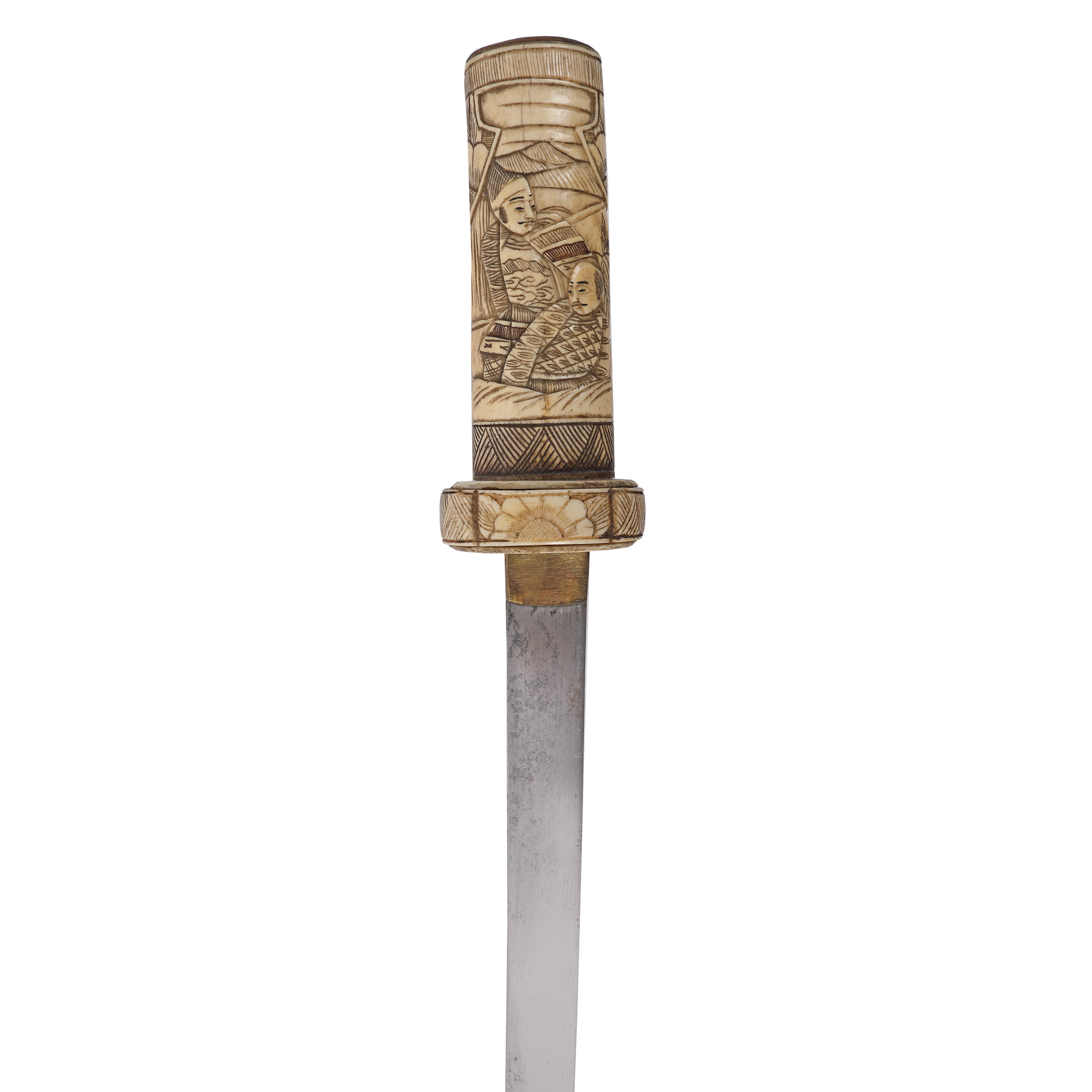 15. Pumnal tanto, cu mânerul și teaca din os sculptat, Japonia, jumătatea sec. XX