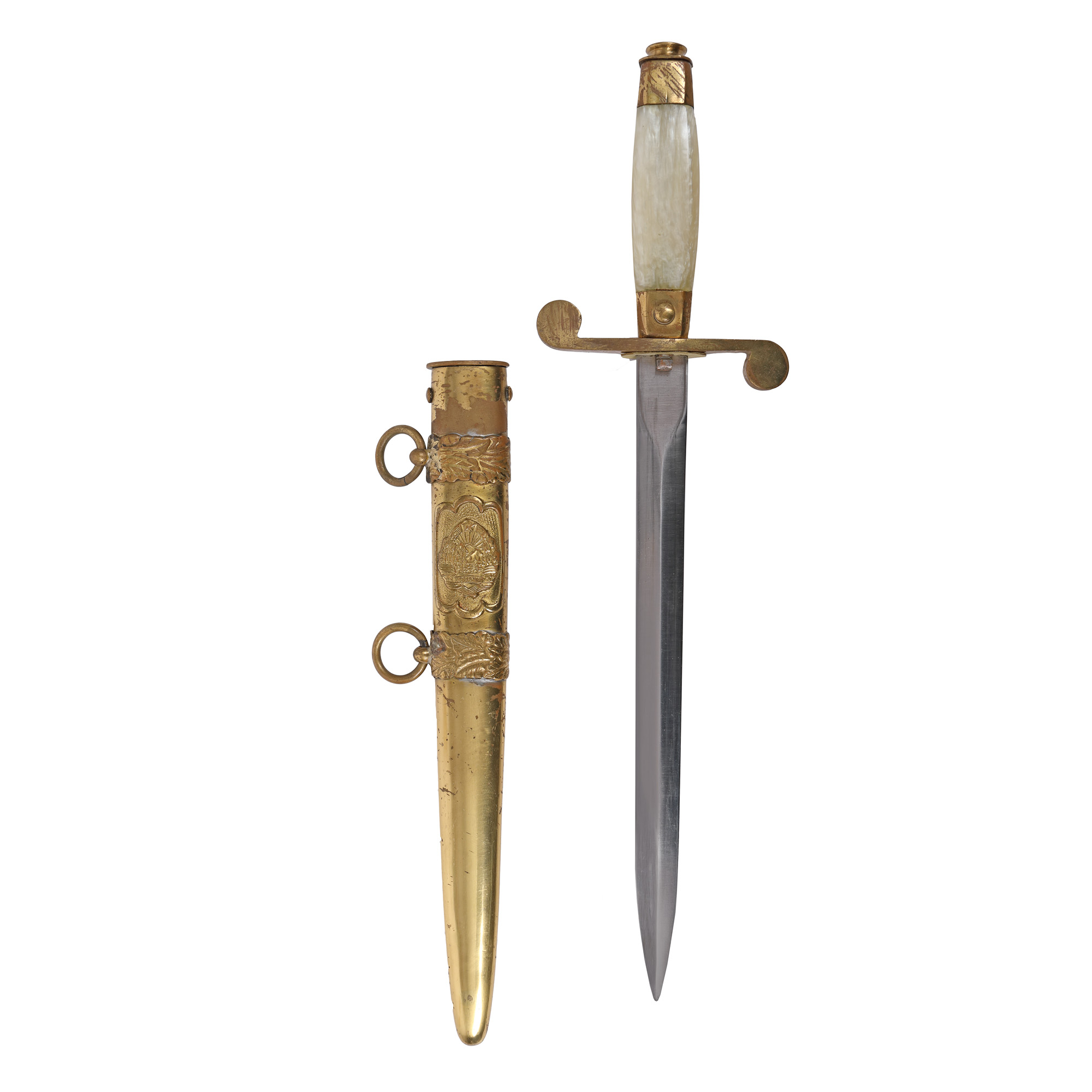 14. Stilet de ofițer, cu beliere, teacă și centură, în cutia originală, Republica Socialistă România, cca. 1965-1985