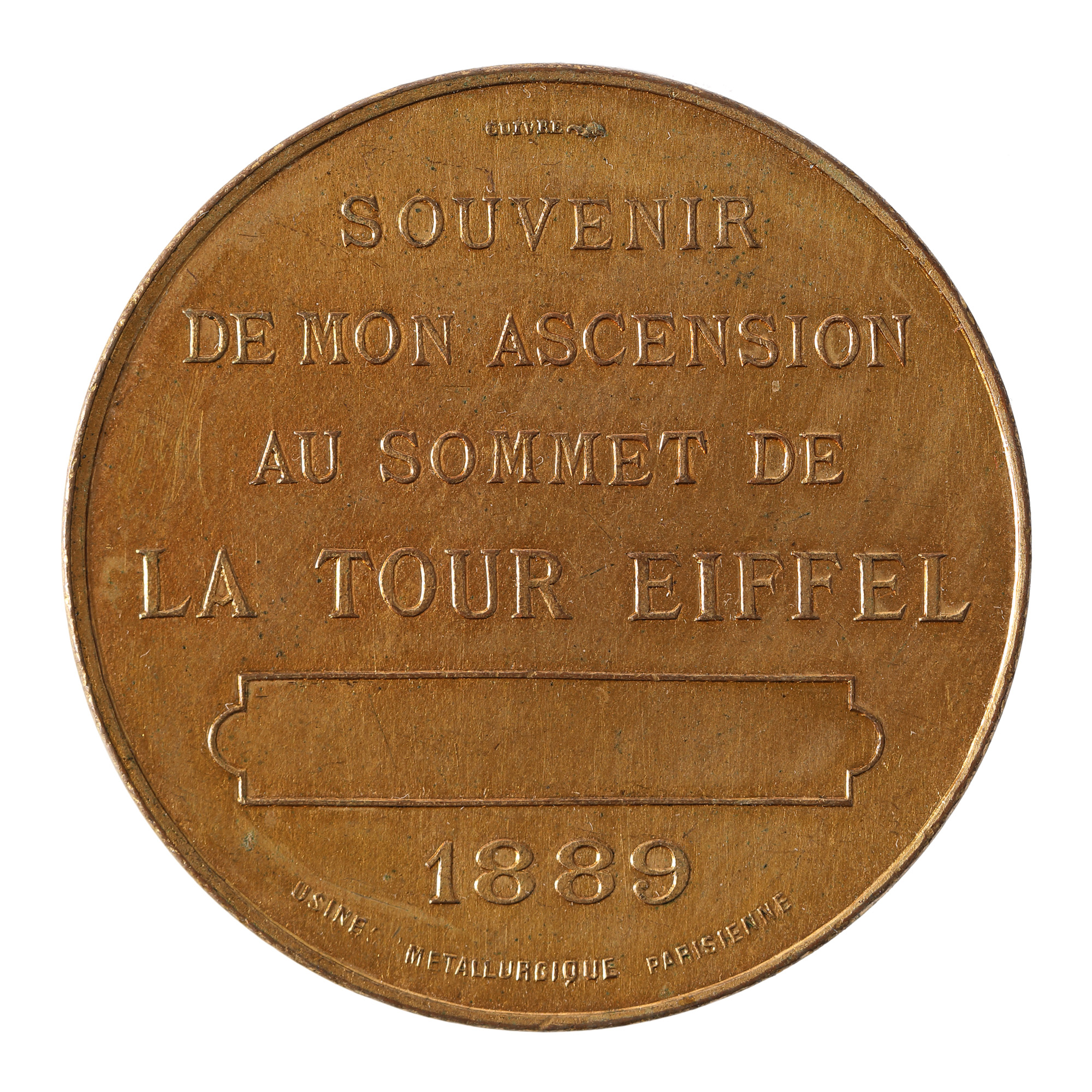 213. Medalia ”Suvenir de la ascensiunea la vârful Turnului Eiffel”, 1889