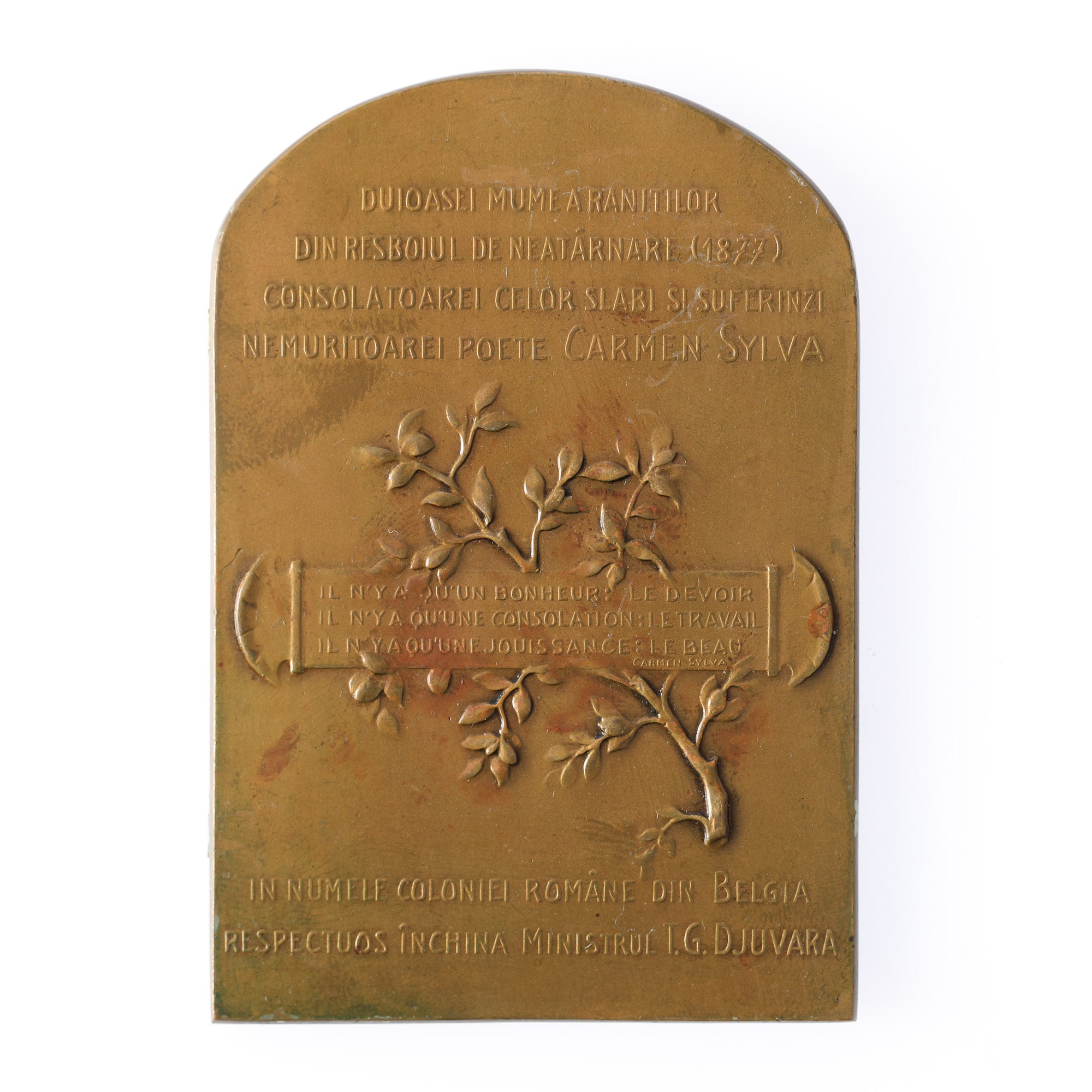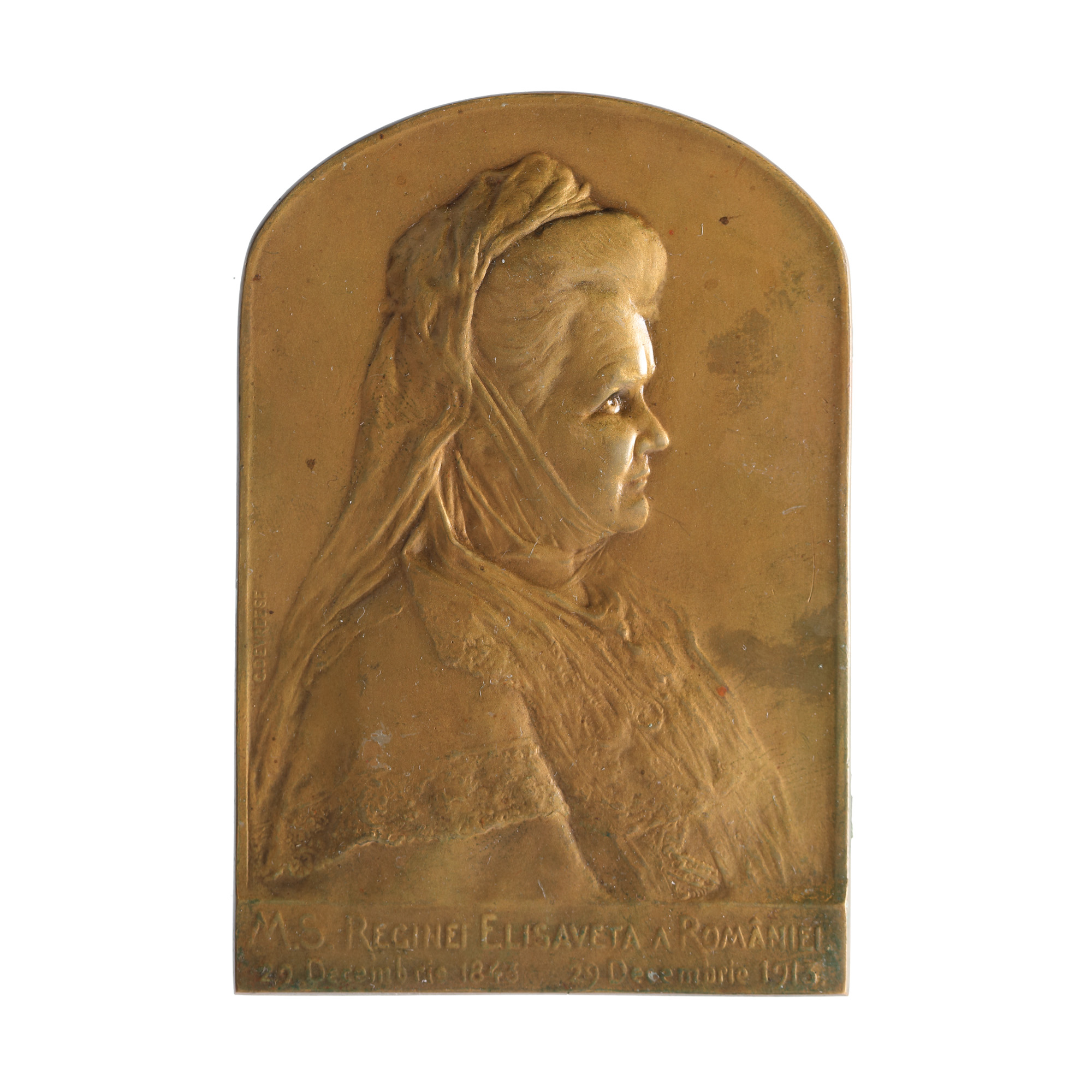 211. Placheta ”M.S. Reginei Elisaveta a României”, din partea coloniei române din Belgia, gravor Godefroid Devreese, 1913, piesă rară