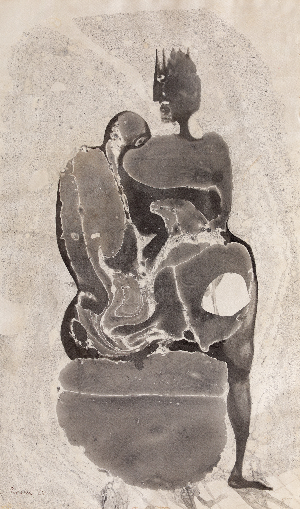 semnat și datat stânga jos, cu negru, "Perahim, (19)68"