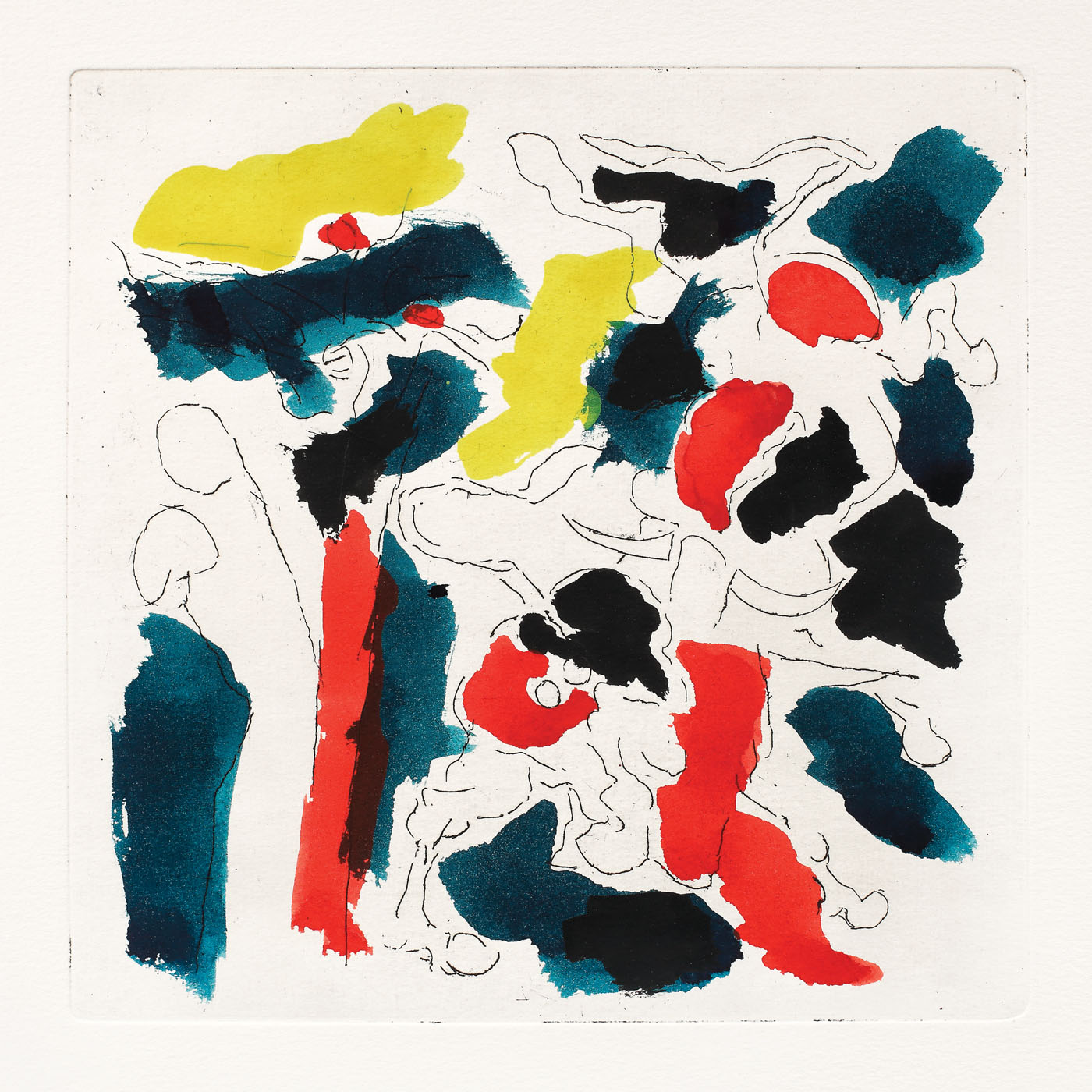 semnat, intitulat, notat şi datat pe verso, în creion, "Ilie Pavel, Luptă cu tauri, gravură în metal, tehnică mixtă, 1985-1990"