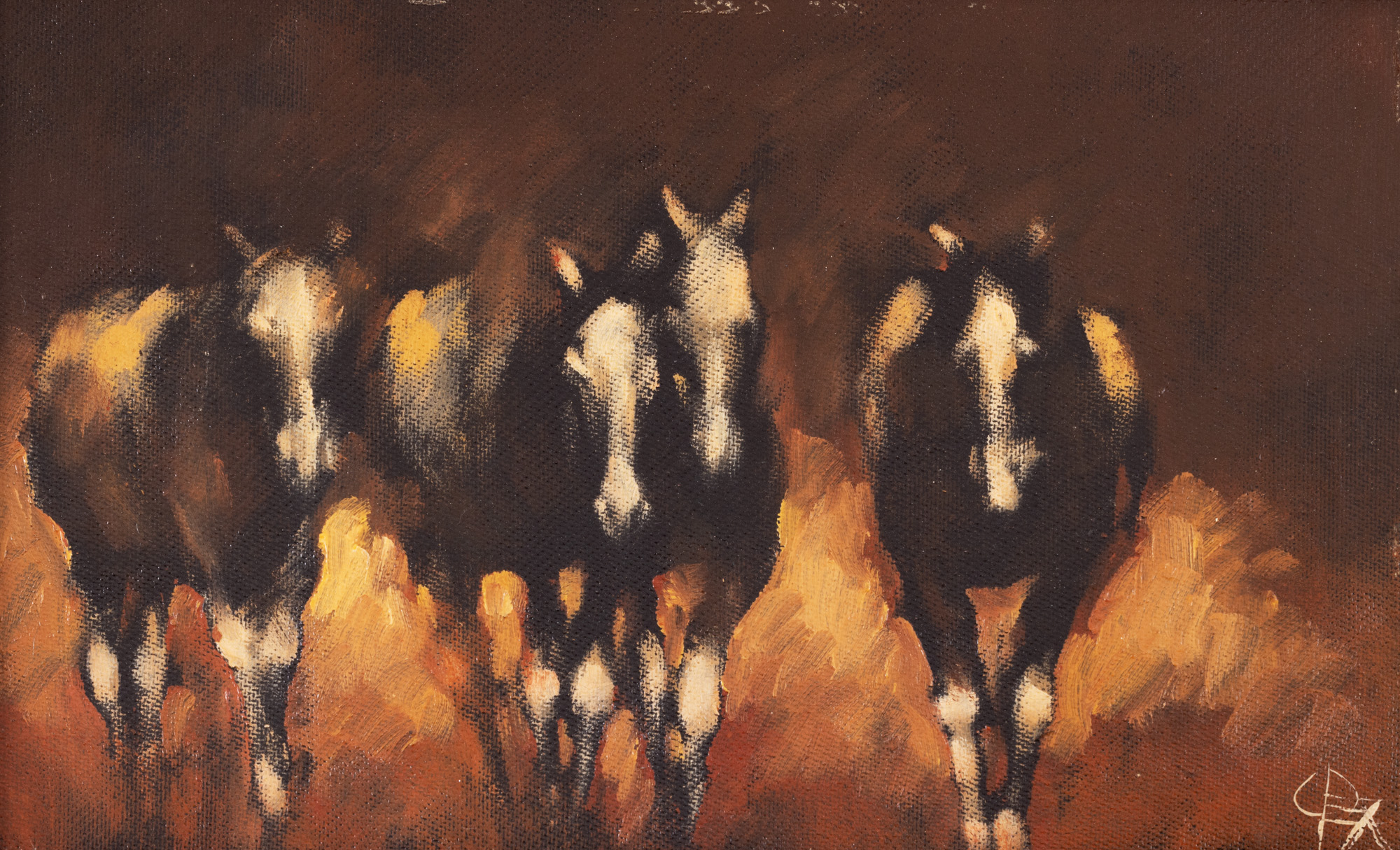 semnat dreapta jos, cu alb, în monogramă, "Oprea"