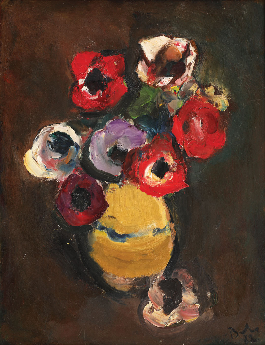 semnat și datat dreapta jos, cu negru, "Baba, (19)82"; semnat, datat și intitulat pe verso, "Corneliu Baba, Anemone, 1982"