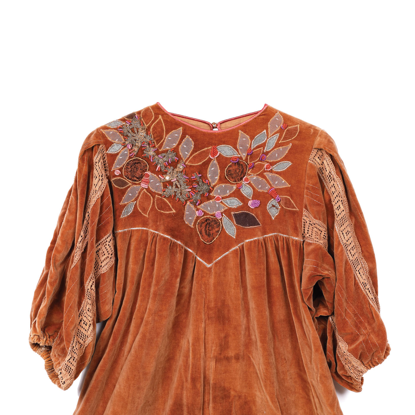 catifea, dantelă și inserții de paiete și fire metalice