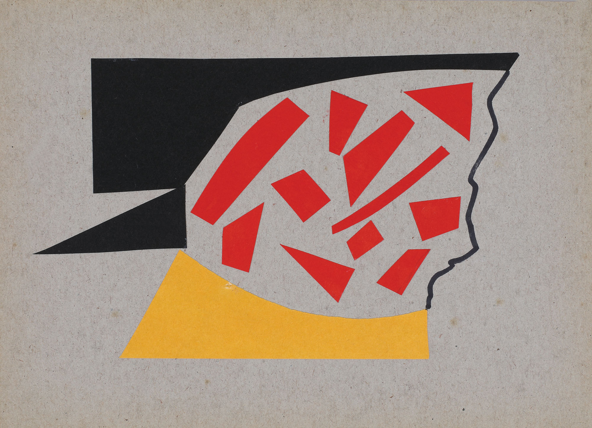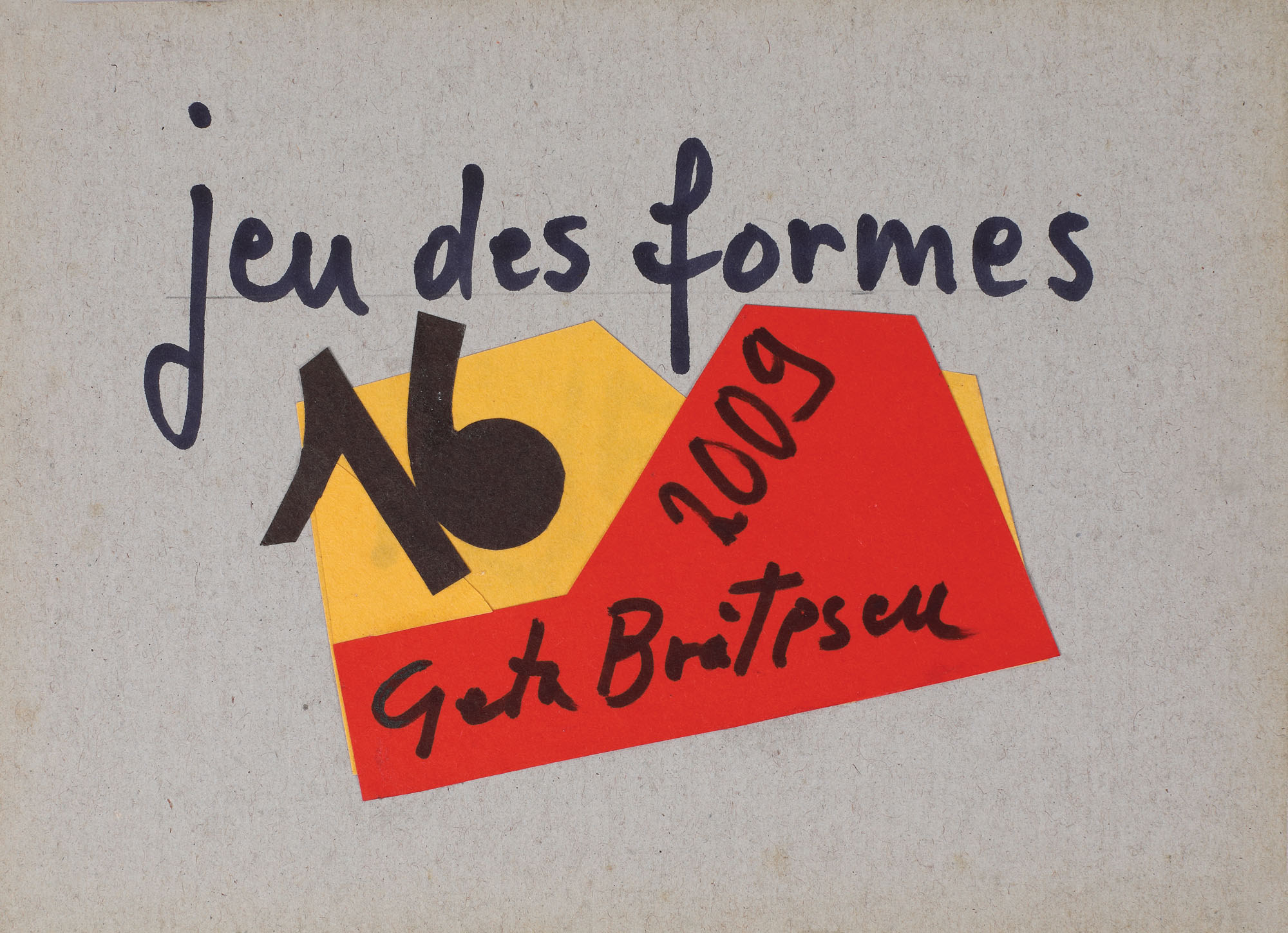 semnat, datat și intitulat, cu negru, "Geta Brătescu, Jeu des formes, 2009"; semnat și numerotat fiecare în parte, pe verso, cu negru, "GB, 1-16"