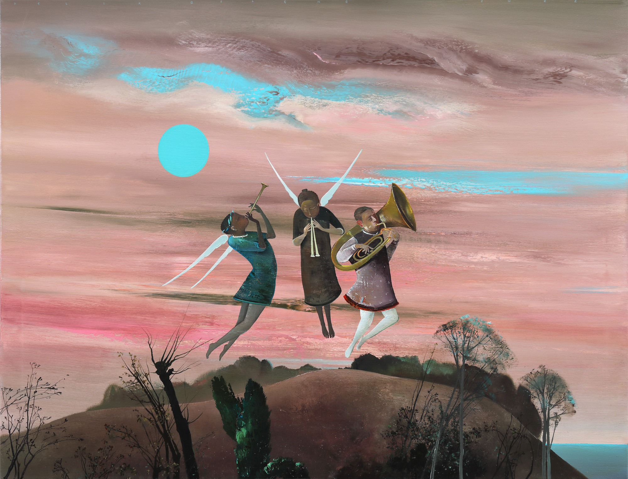 semnat și datat central sus, cu albastru, "Felix Aftene, 2022"