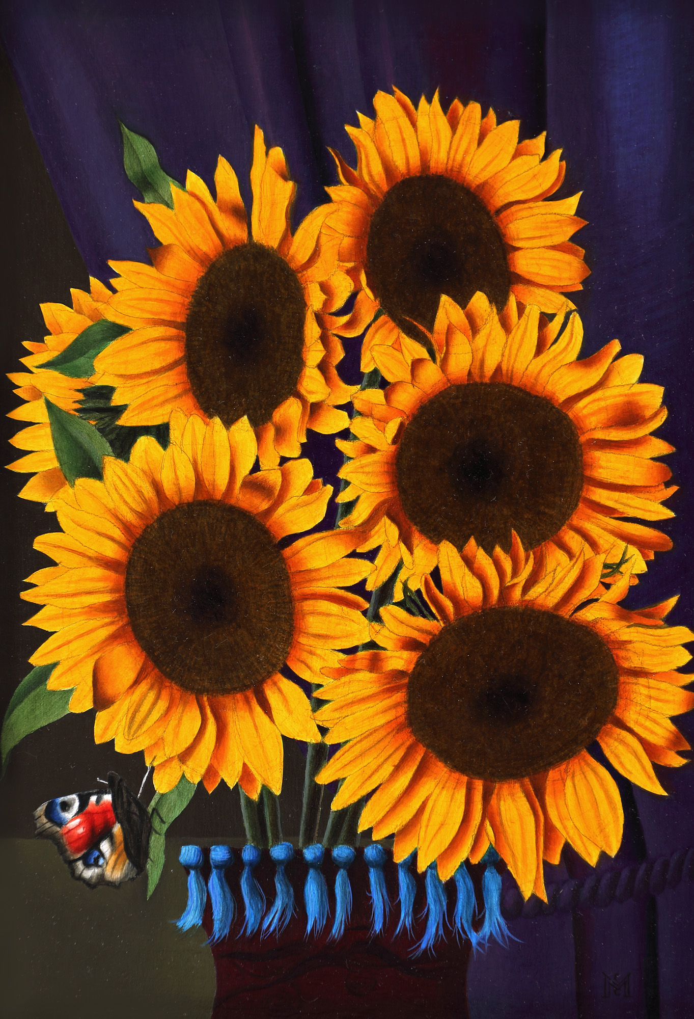 semnat dreapta jos, cu negru, în monogramă, "MM"