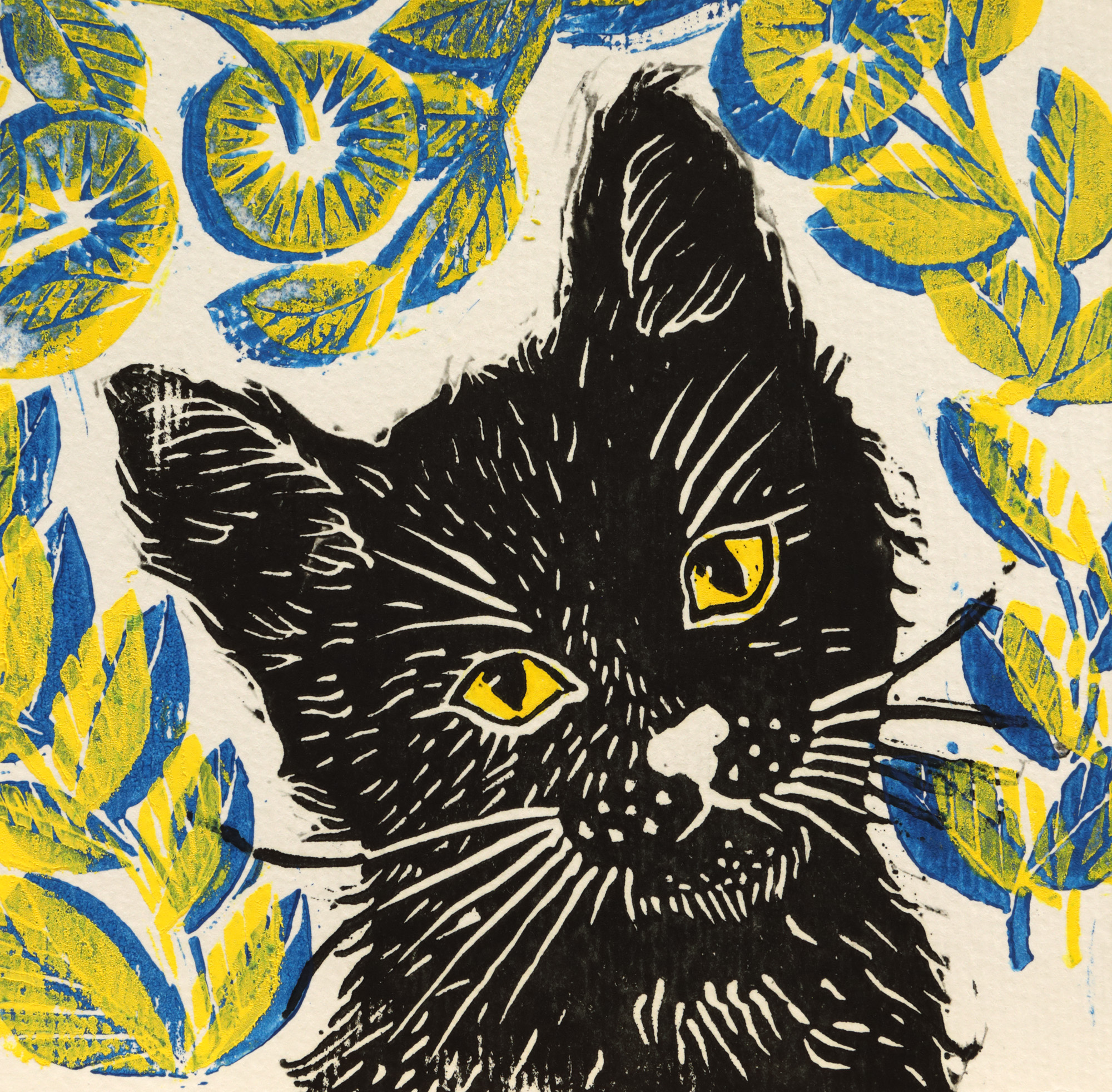 linogravură și acrilic pe carton