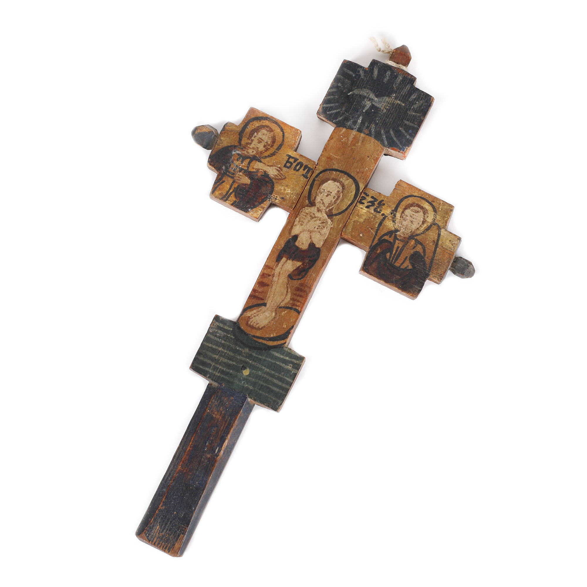 24. Cruce de mână, decorată cu scenele ”Răstignirii” și ”Botezului”, atelierul familiei Poienaru din Laz, 1904