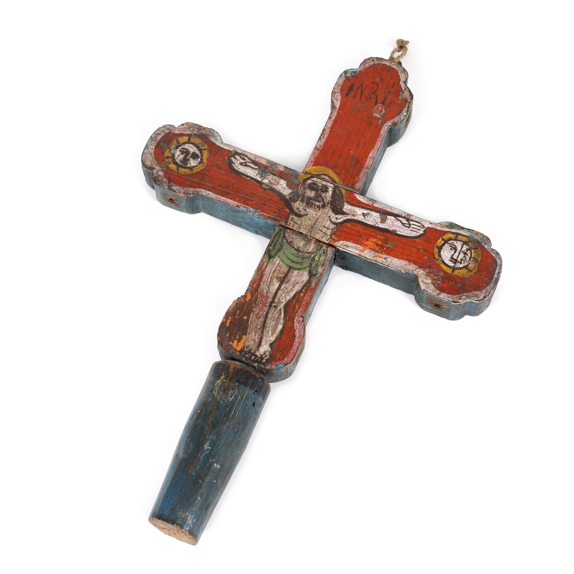 31. Cruce de mână, decorată cu scenele ”Răstignirii” și ”Botezului”, posibil atelier din Banat, sfârșitul sec. XIX