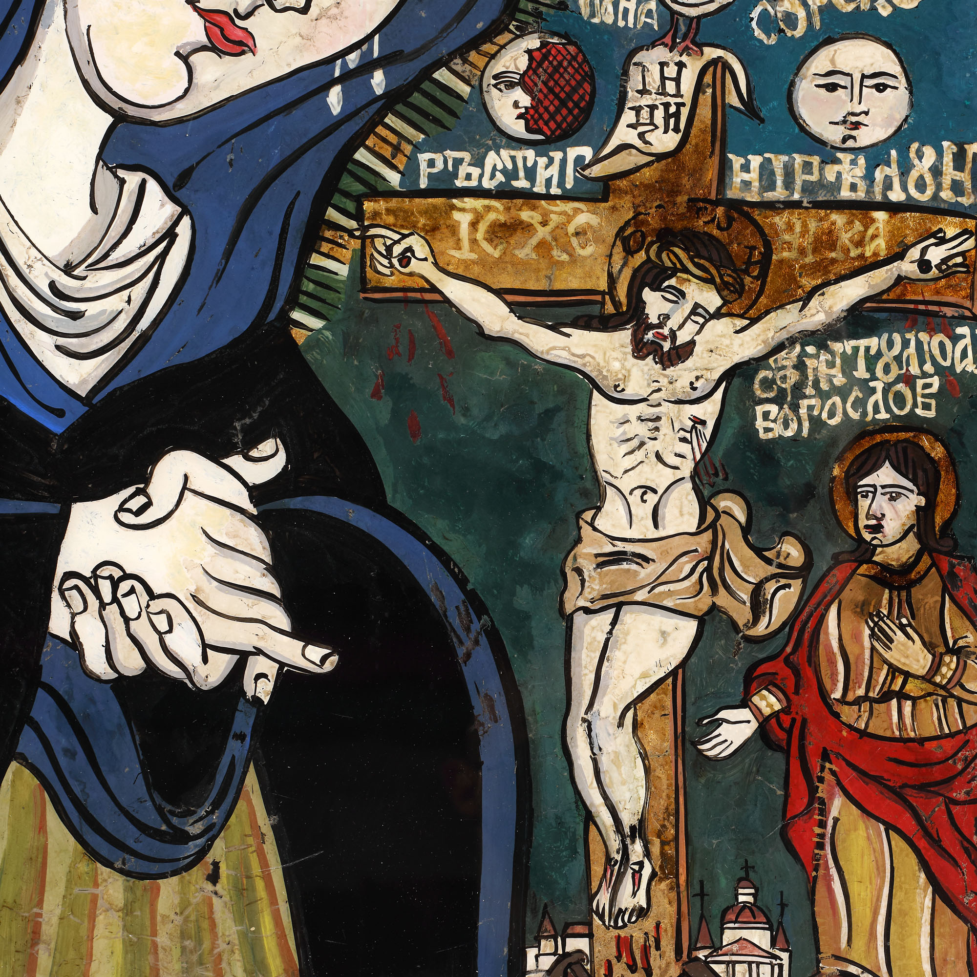 13. Icoană pe glajă, ”Maica Domnului Îndurerată”, atelier din Țara Bârsei, a doua jumătate a sec. XIX