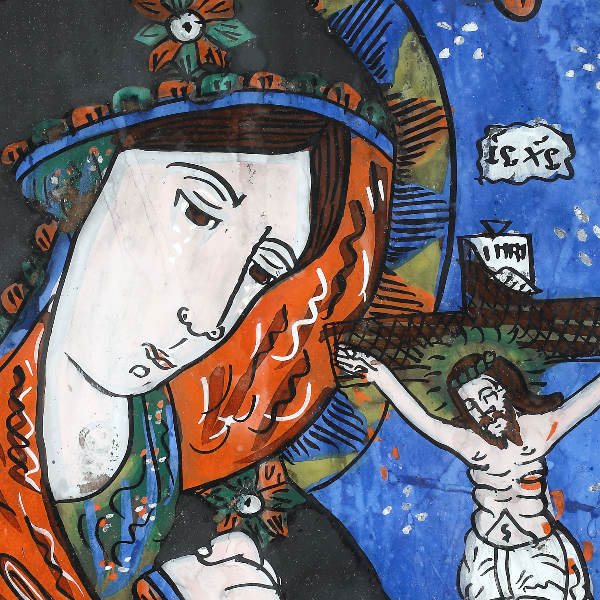 12. Icoană pe glajă, ”Maica Domnului Îndurerată”, atribuit zugrav Nicolae Oancea din Vale, Mărginimea Sibiului, jumătatea sec. XIX