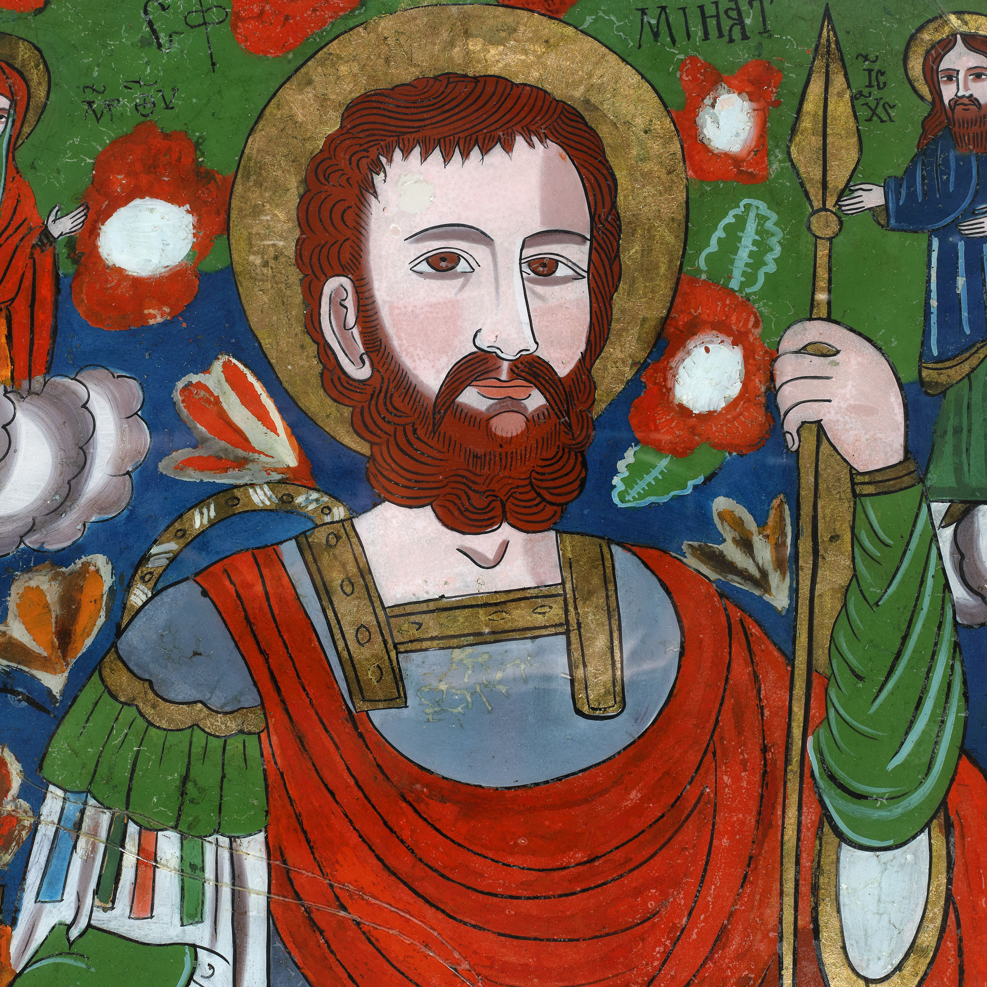18. Icoană pe glajă, ”Sfântul Mina”, atelier din Șcheii Brașovului, sfârșitul sec. XIX, piesă rară