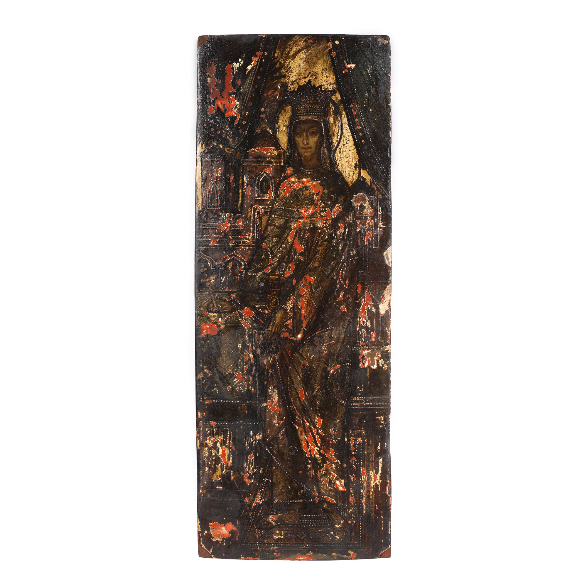 46. Icoană pe lemn, ”Sfânta Împărăteasă Elena”, probabil școală grecească, sec. XIX