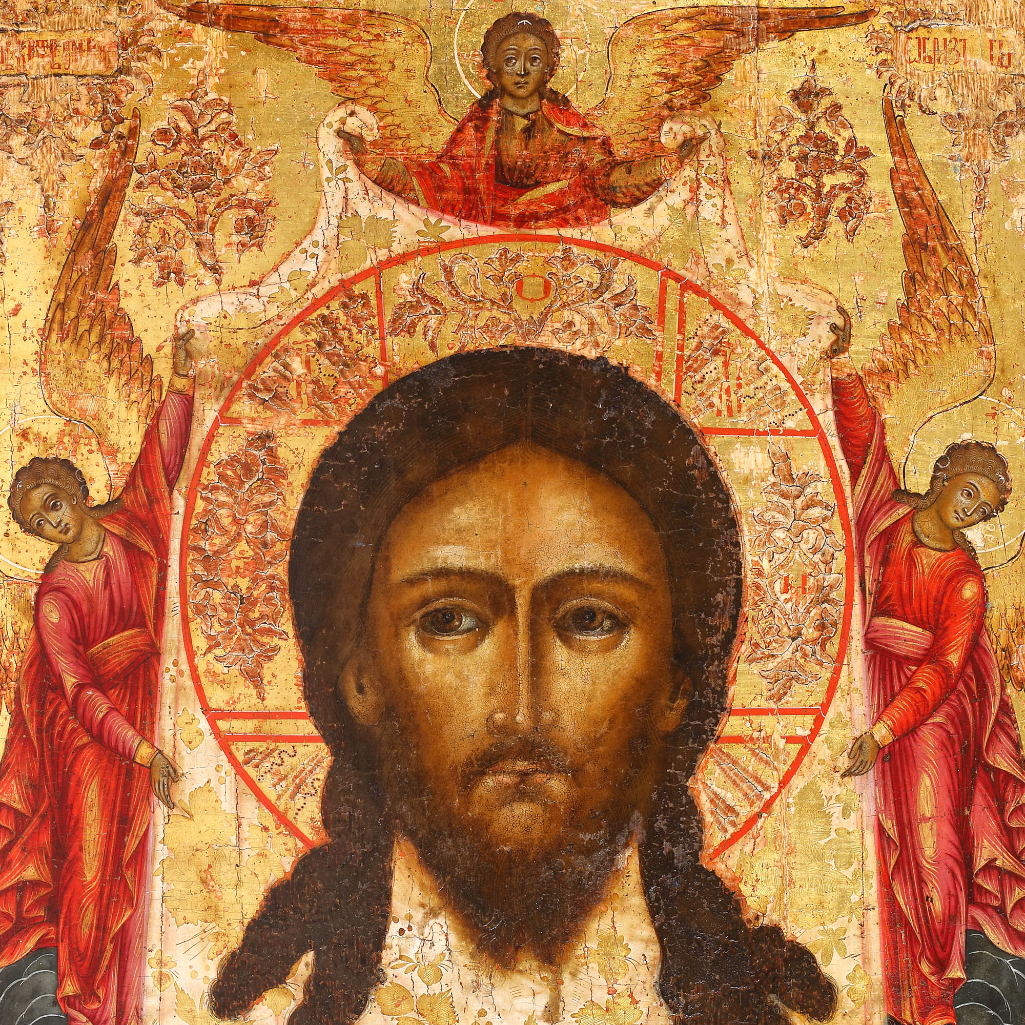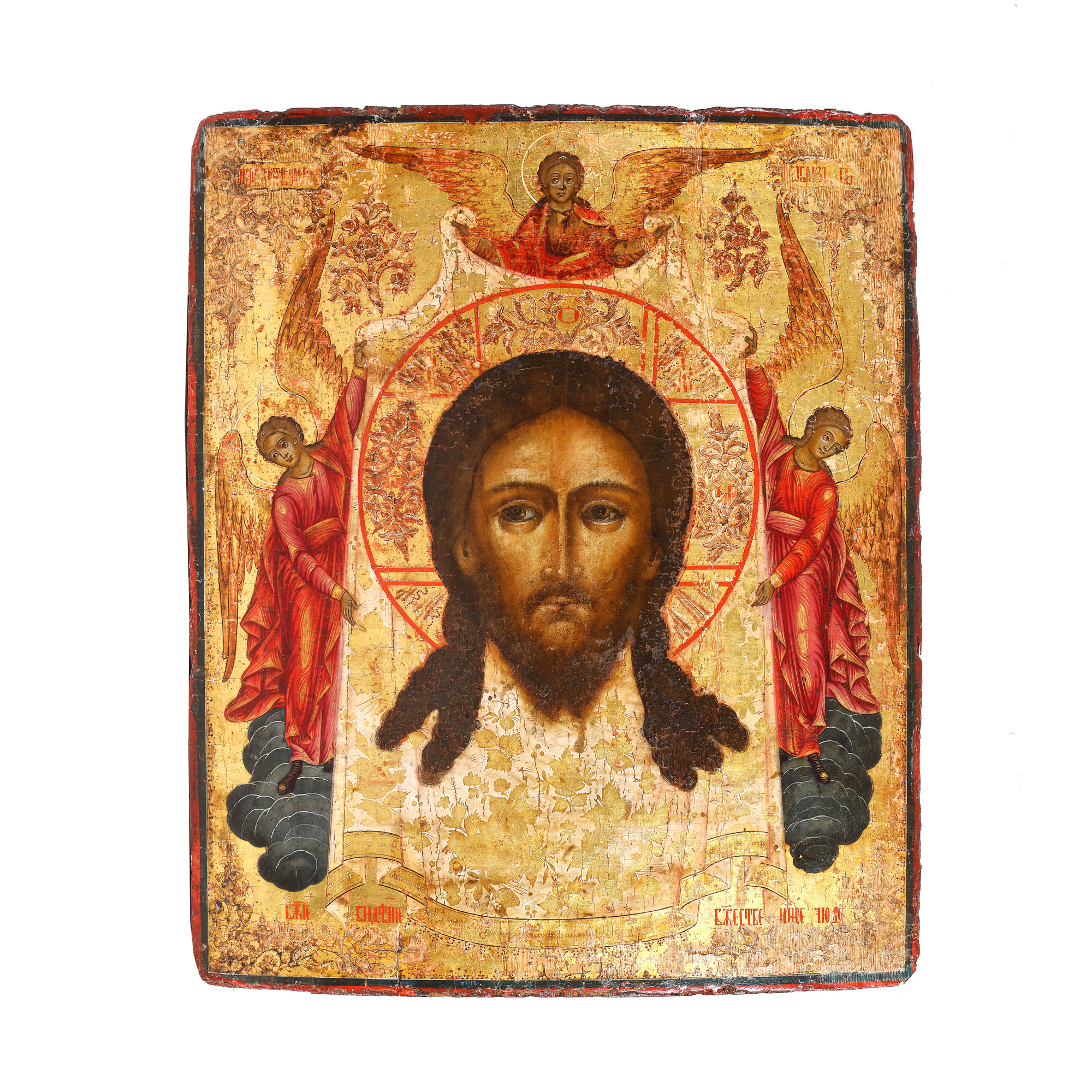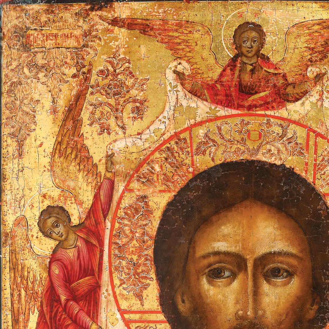 40. Icoană pe lemn, ”Sfântul Mandylion”, școală rusească, jumătatea sec. XIX