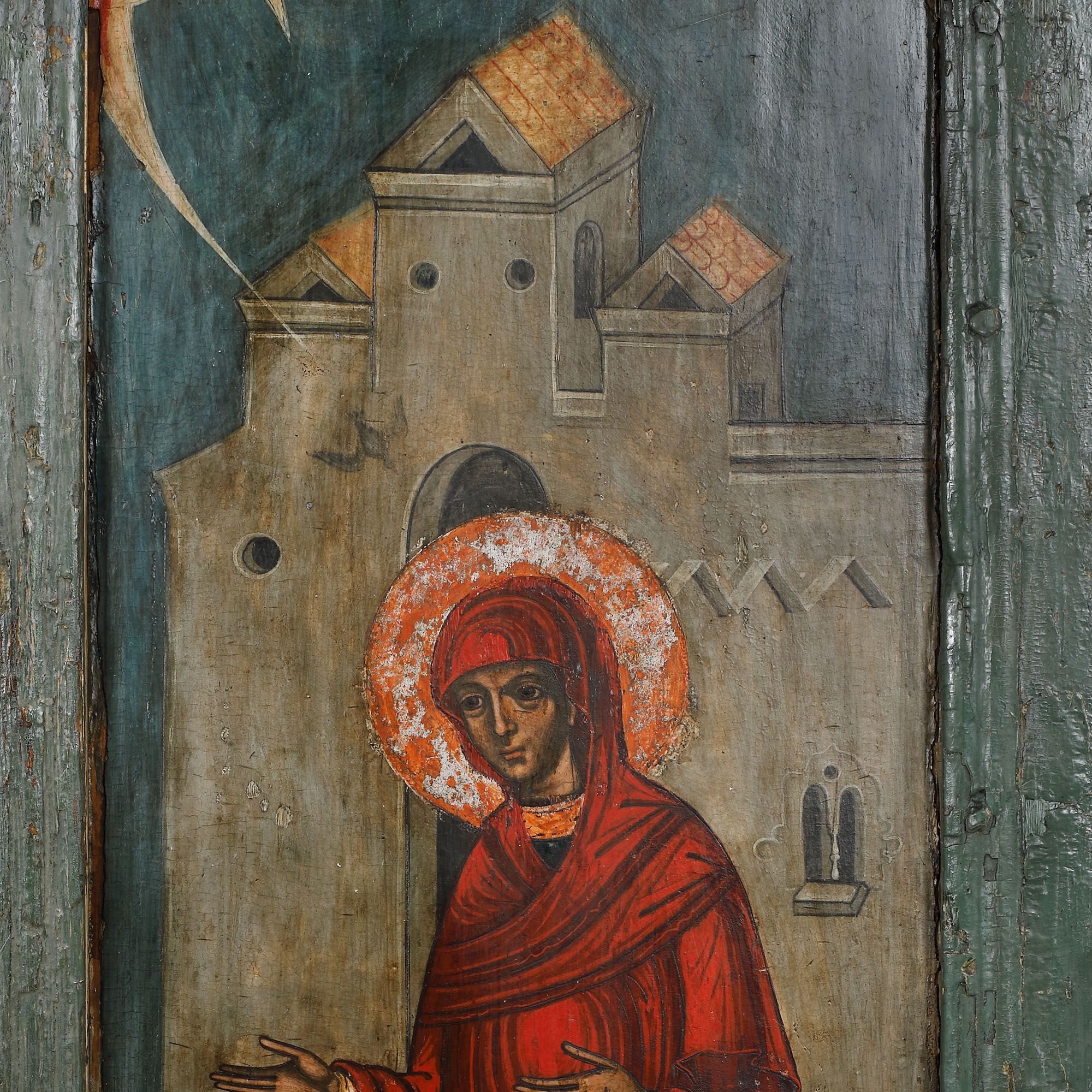 34. Uși împărăteşti, "Buna Vestire", Țara Românească, școală brâncovenească, epoca lui Constantin Brâncoveanu, începutul sec. XVIII, piesă rară, de colecție
