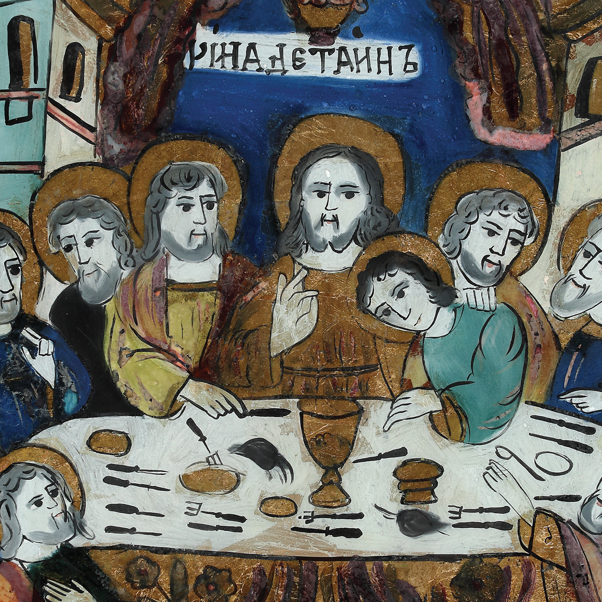 26. Icoană pe glajă, "Cina cea de Taină", atelierul familiei Prodan, probabil Maria Prodan, Alba Iulia, sfârșitul sec. XIX, piesă rară, de coleție