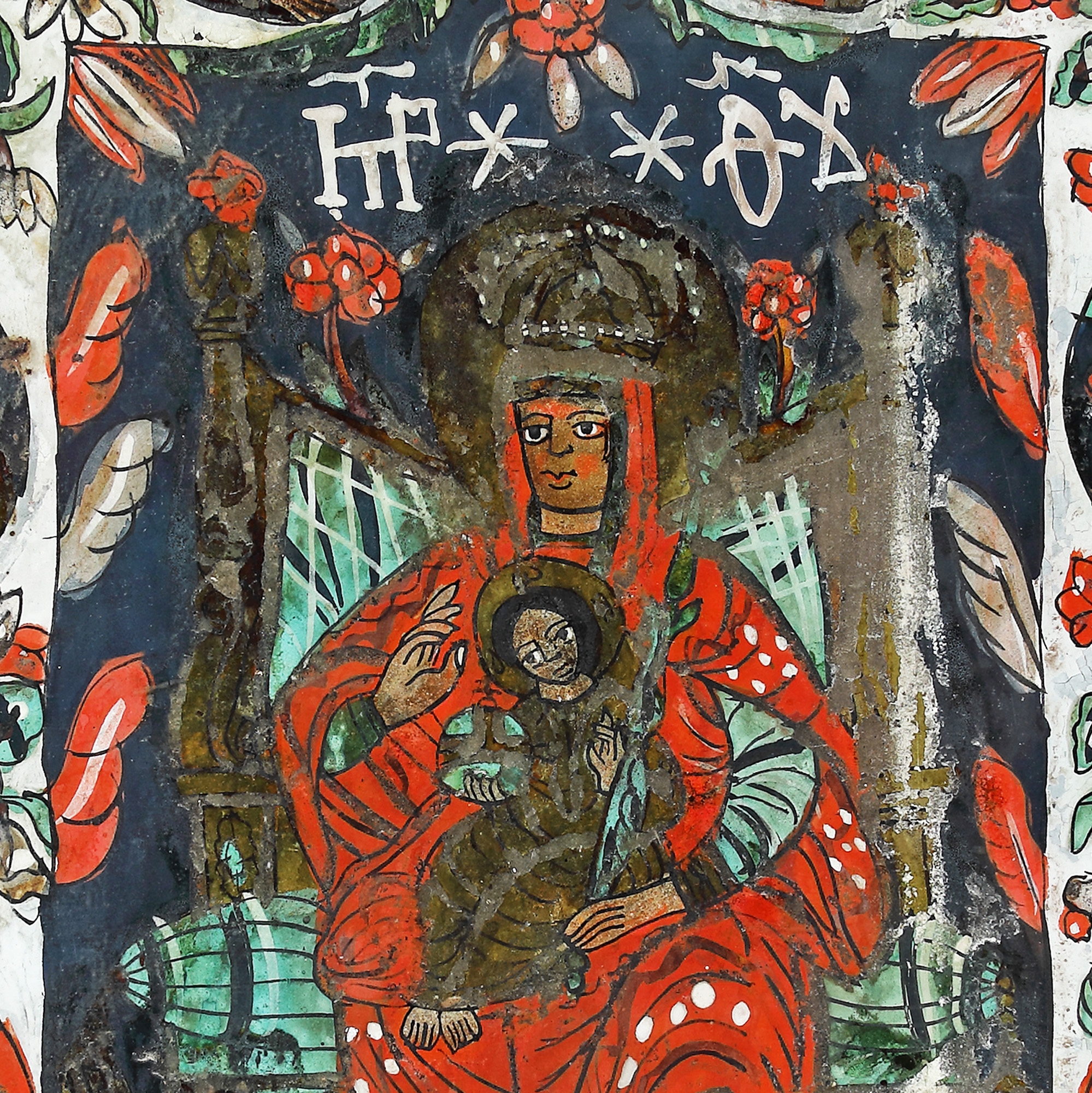 9. Icoană pe glajă, ”Maica Domnului cu Pruncul - Împărăteasă și 12 Prooroci din Vechiul Testament", atelier din Mărginimea Sibiului, prima jumătate a sec. XIX