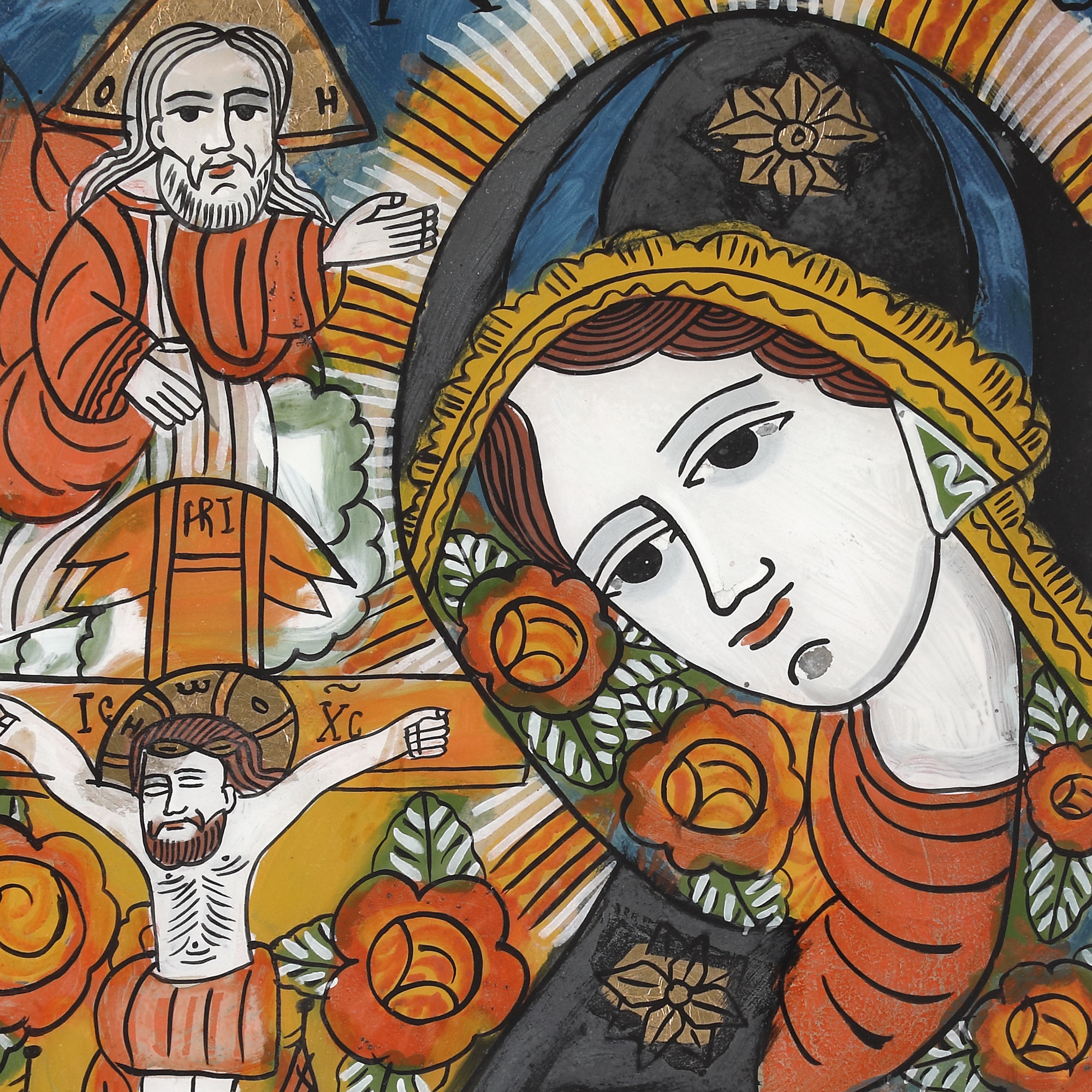 4. Icoană pe glajă, ”Maica Domnului Îndurerată”, atelier din Șcheii Brașovului, sfârșitul sec. XIX