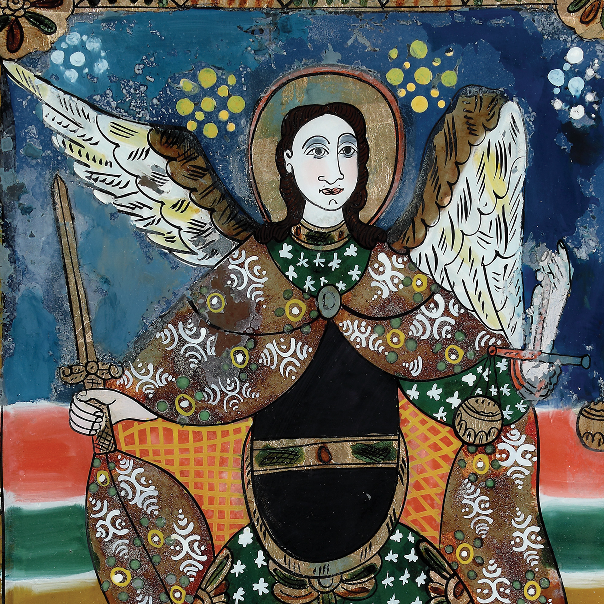 12. Icoană pe glajă, ”Sfântul Arhanghel Mihail”, atelier din Banat, sfârșitul sec. XIX, raritate extremă, de colecție