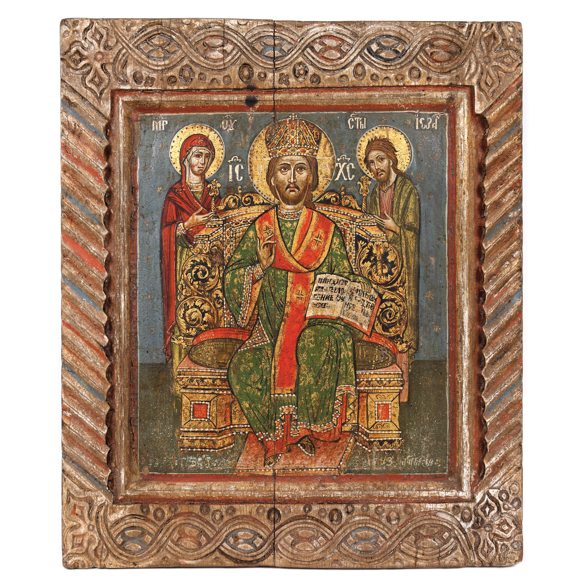 39C. Icoană pe lemn, ”Deisis”, ramă sculptată, Țara Românească, școală post-brâncovenească, 1793, piesă muzeală, de colecție