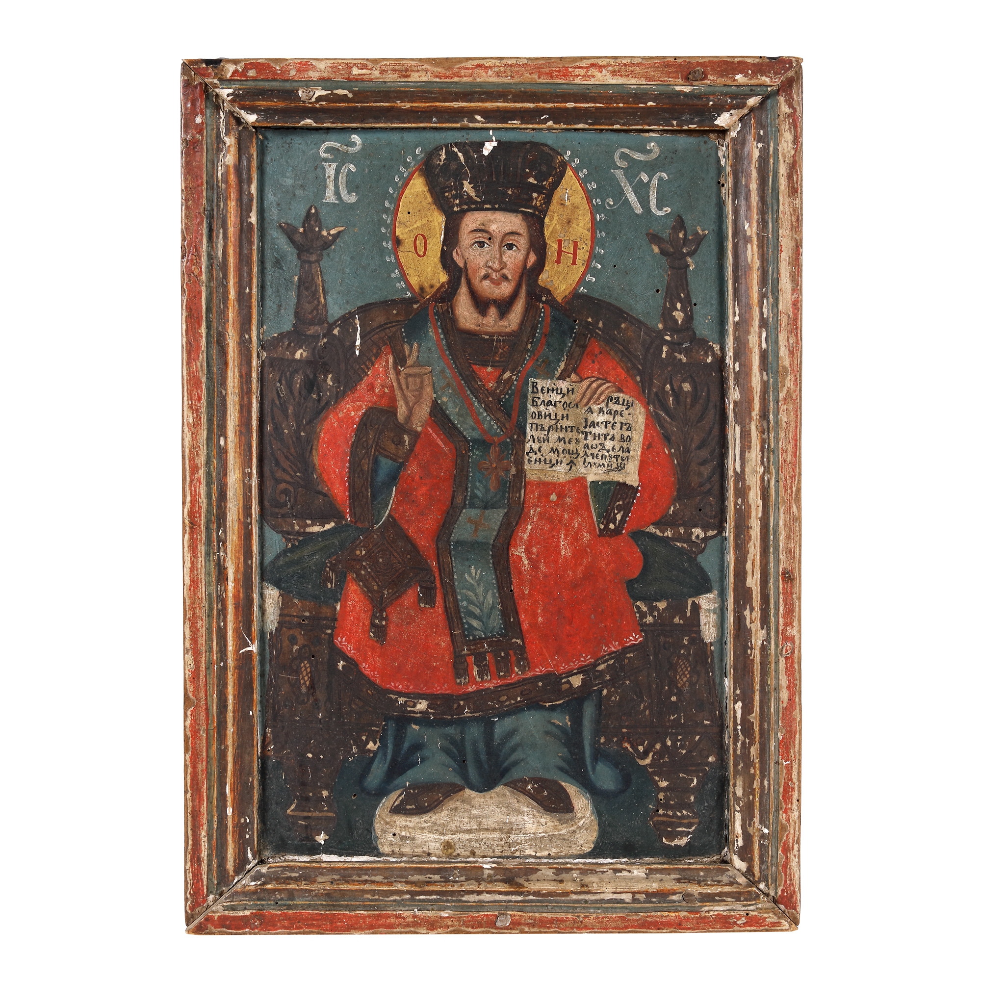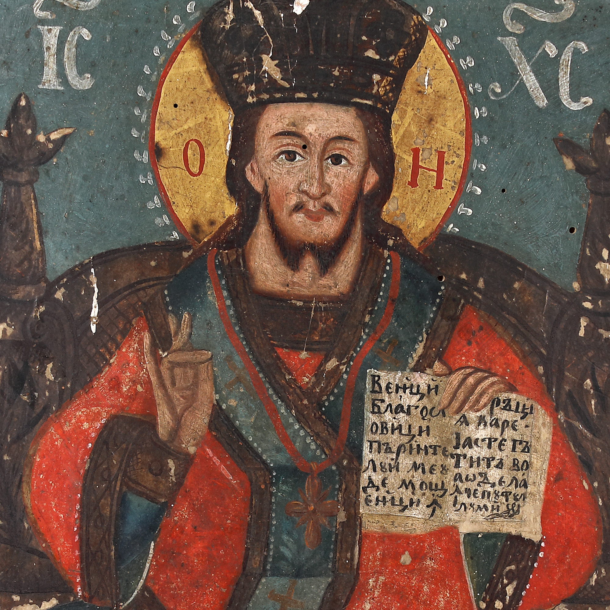 48. Icoană pe lemn, ”Iisus Hristos Împărat și Mare Arhiereu”, școală transilvăneană, jumătatea sec. XVIII