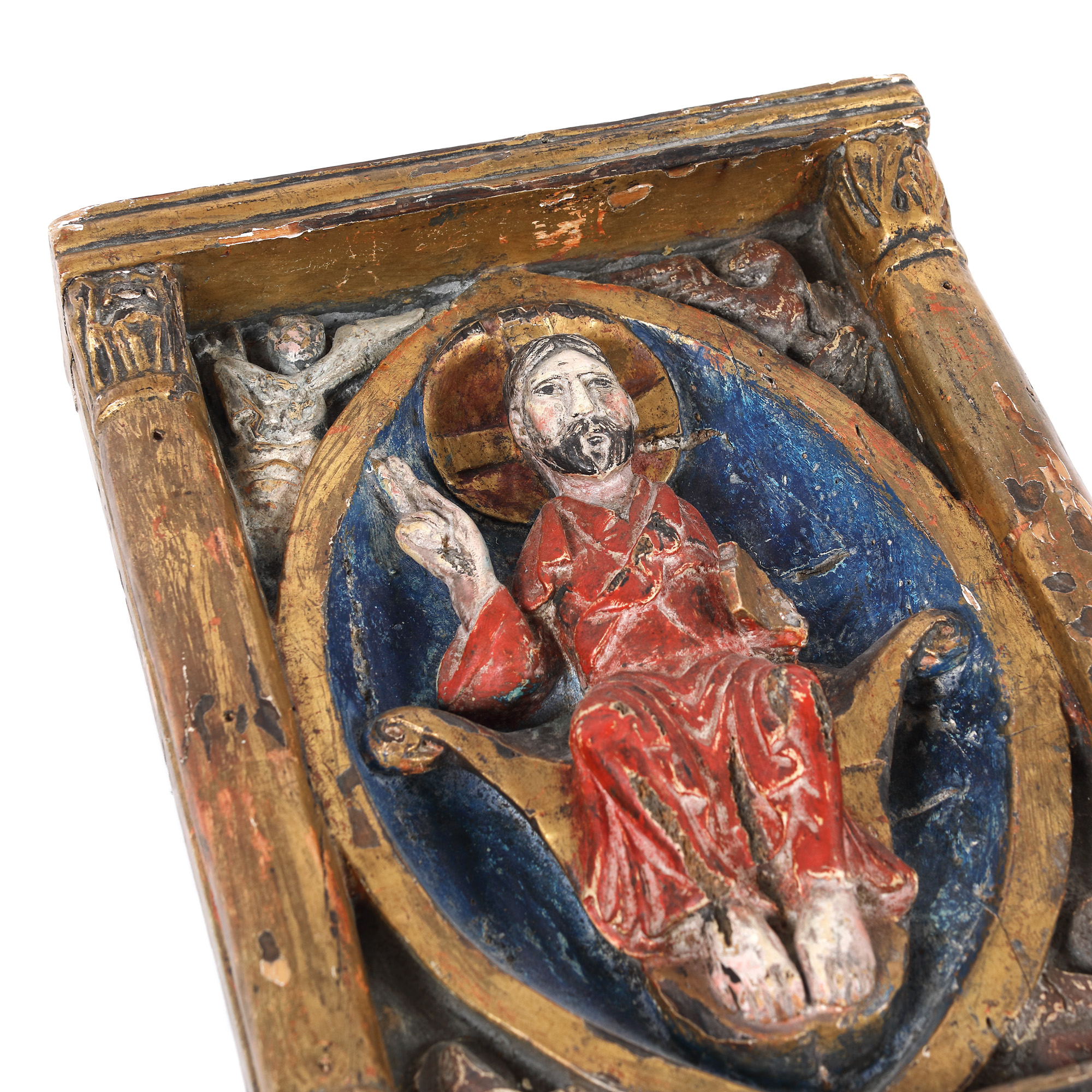 tempera și foiță de aur pe lemn sculptat