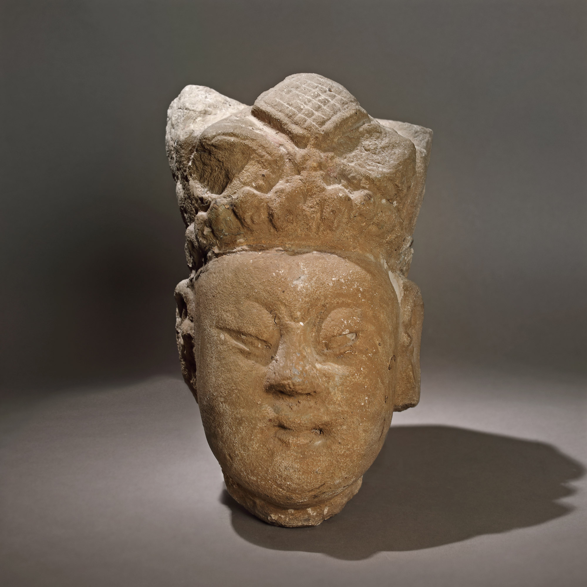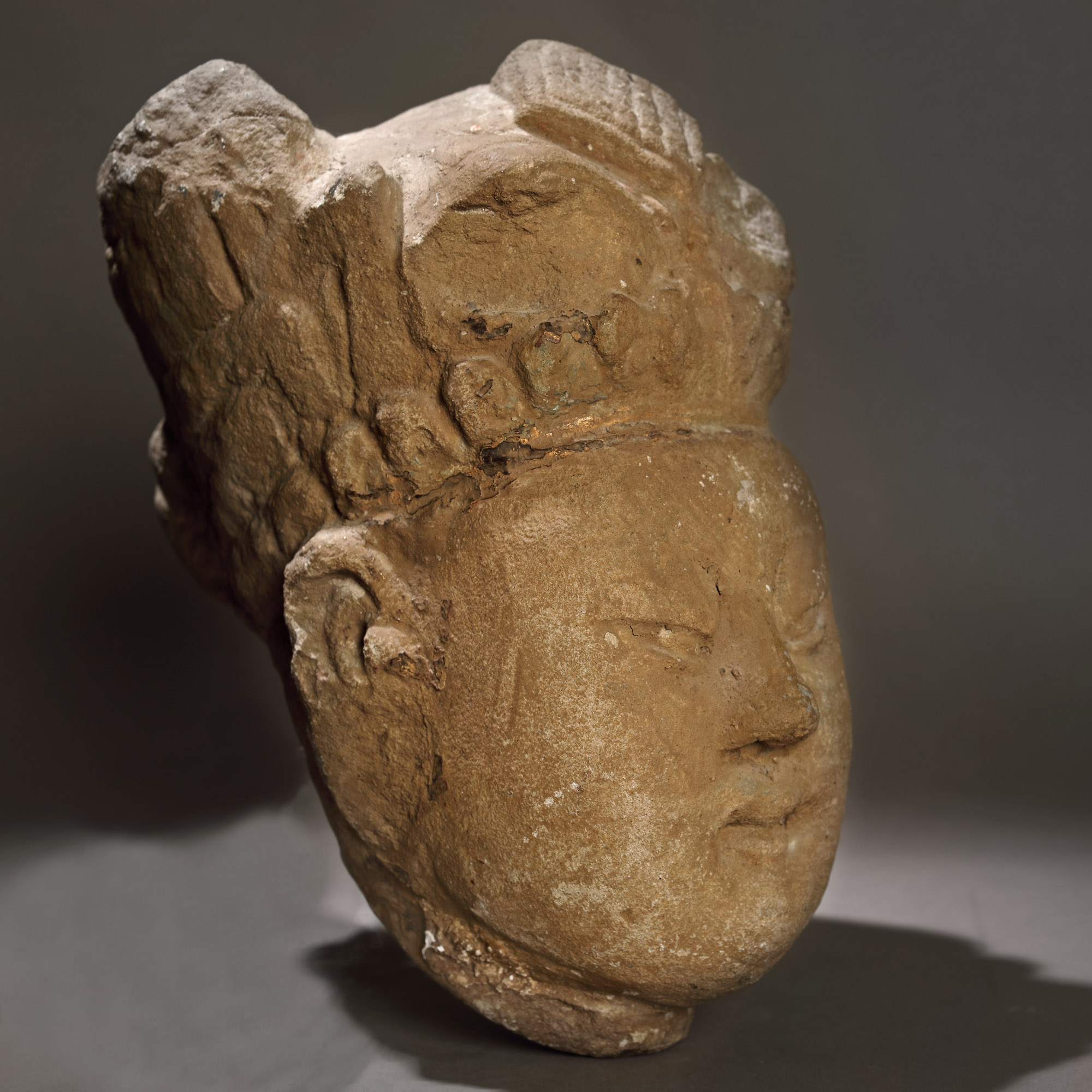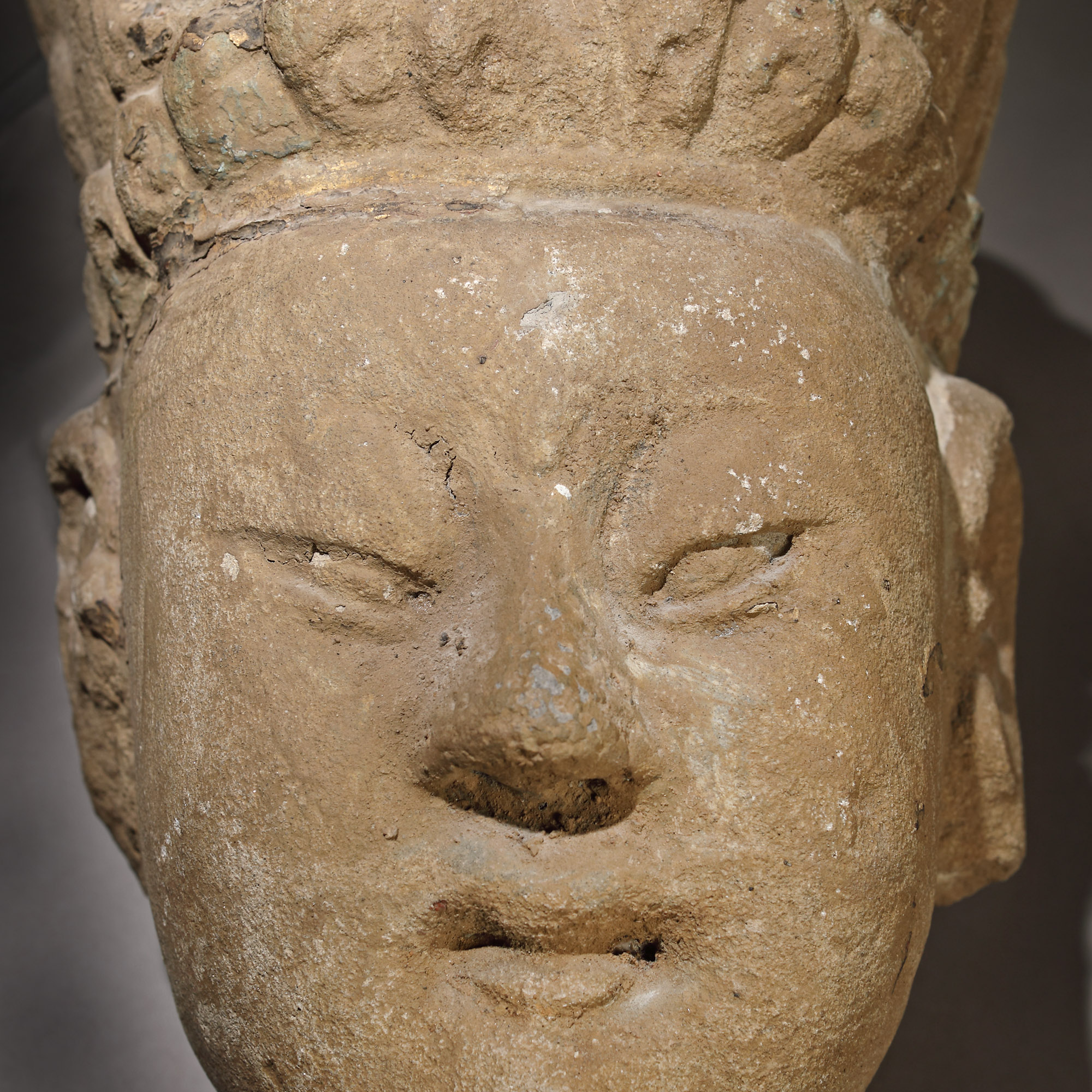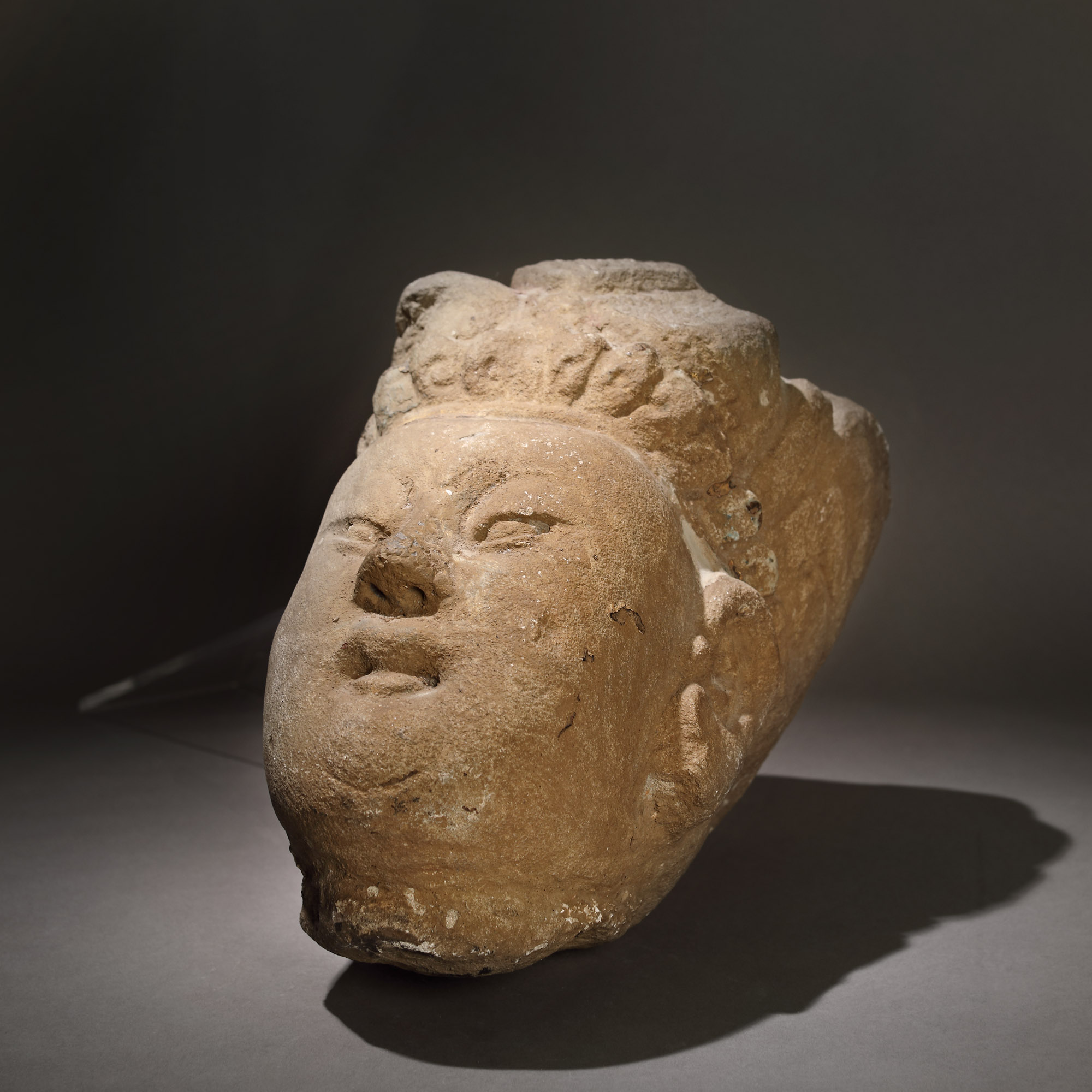 53. Fragment de statuetă, parțial aurită și pictată, ilustrând un demnitar, dinastia Qing, China, sec. XVIII-XIX, provine din colecția Dr. Roth-Nicolau