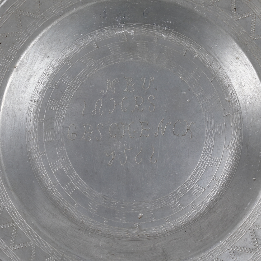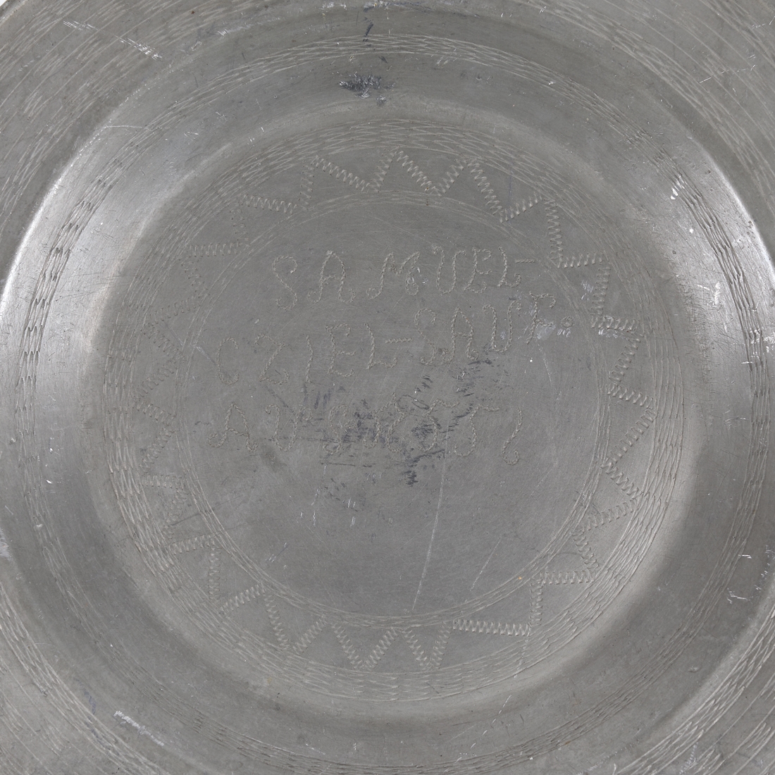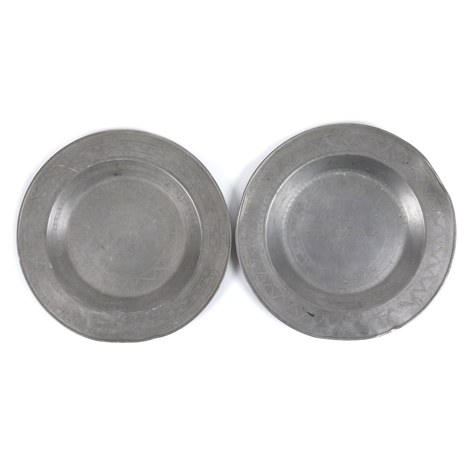 46. Pereche de talere ceremoniale din cositor, Sibiu, datate 1556 și 1566