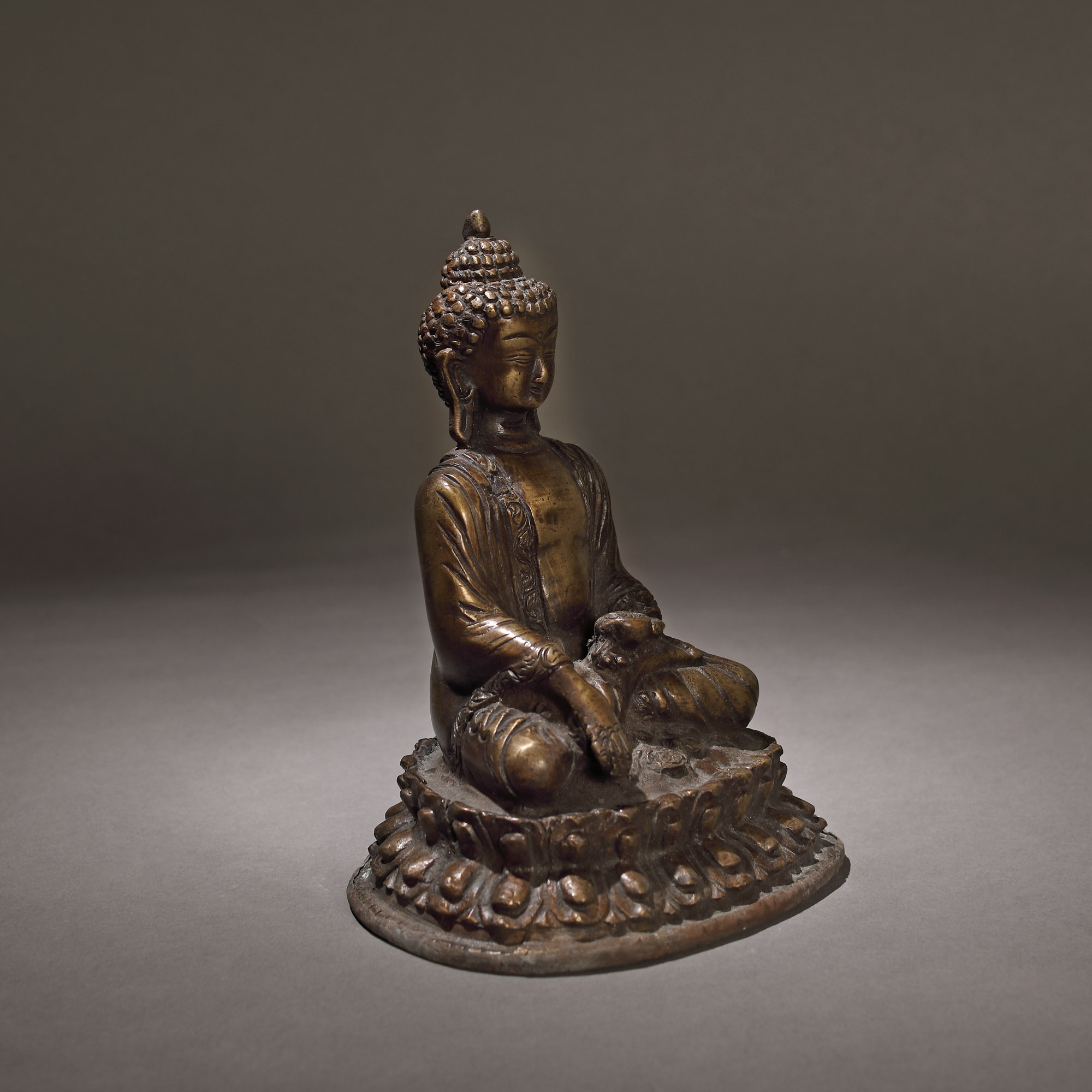 35. Statuetă din bronz, reprezentându-l pe Shakyamuni Buddha, Asia de Sud-Est, sec. XVII-XVIII, provine din colecția Dr. Roth-Nicolau