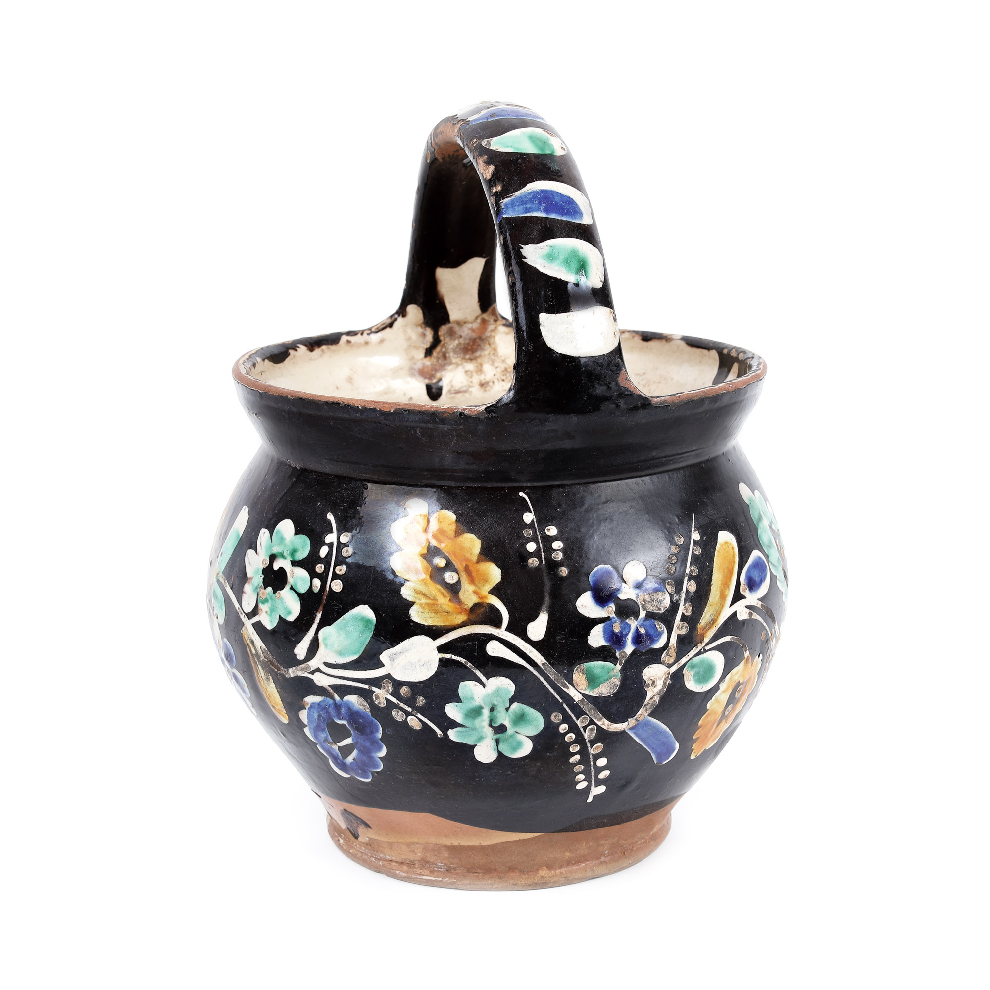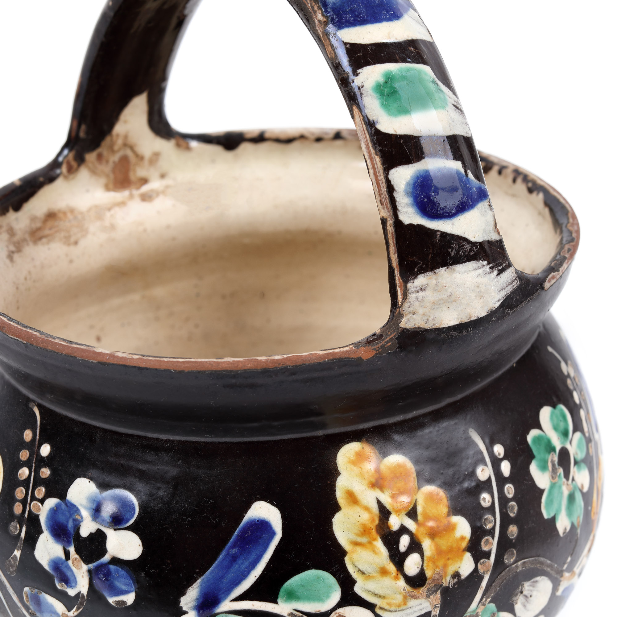 argilă comună, angobă, pigmenți minerali, smalț plombifer
