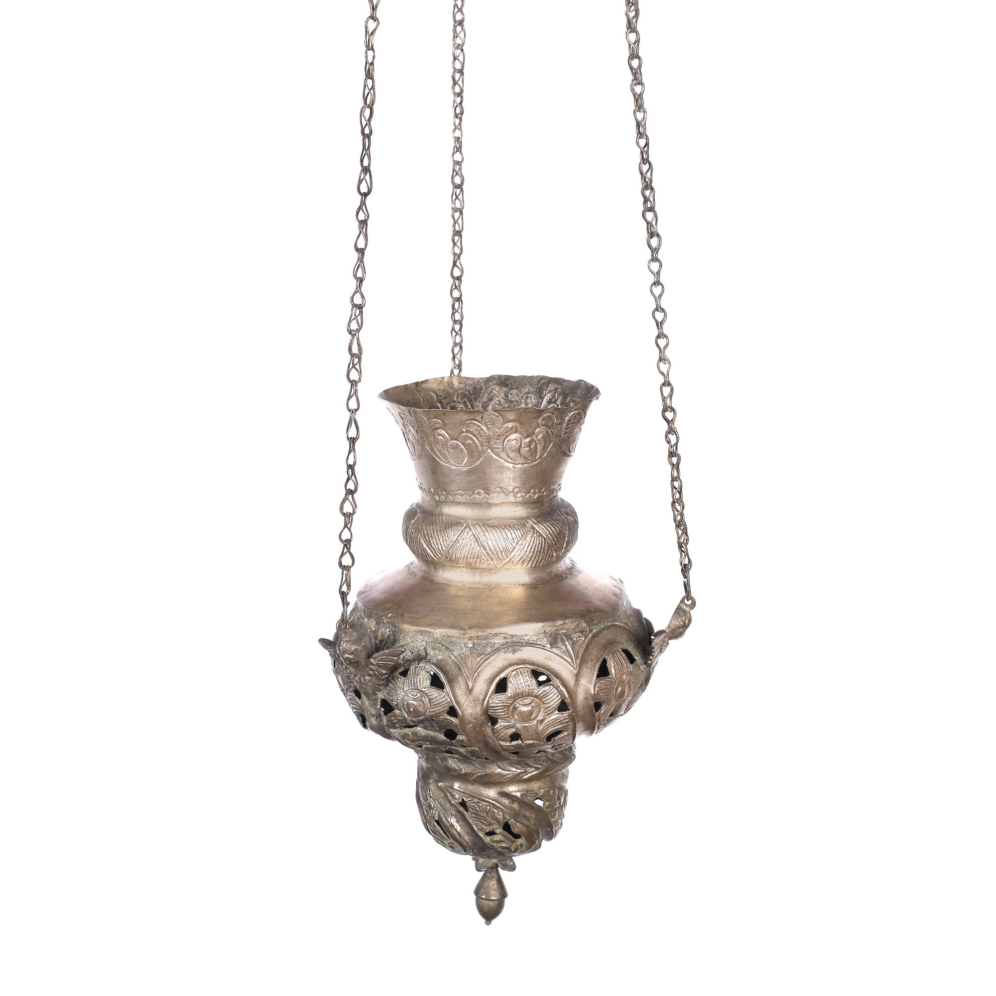 6. Candelă decorată cu putti și motive vegetale, din argint cu titlu inferior, atelier românesc, sec. XIX
