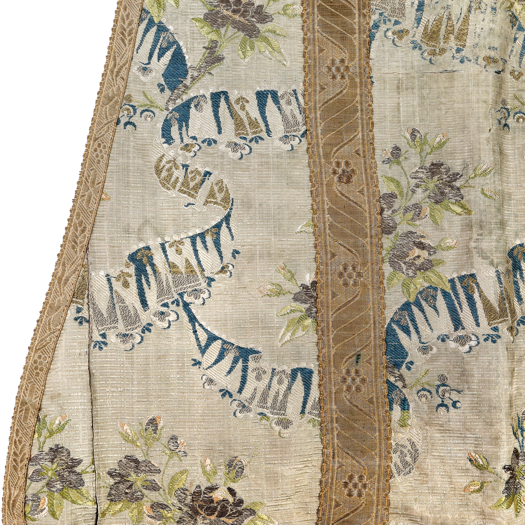 brocard de mătase, fir metalic auriu și argintiu