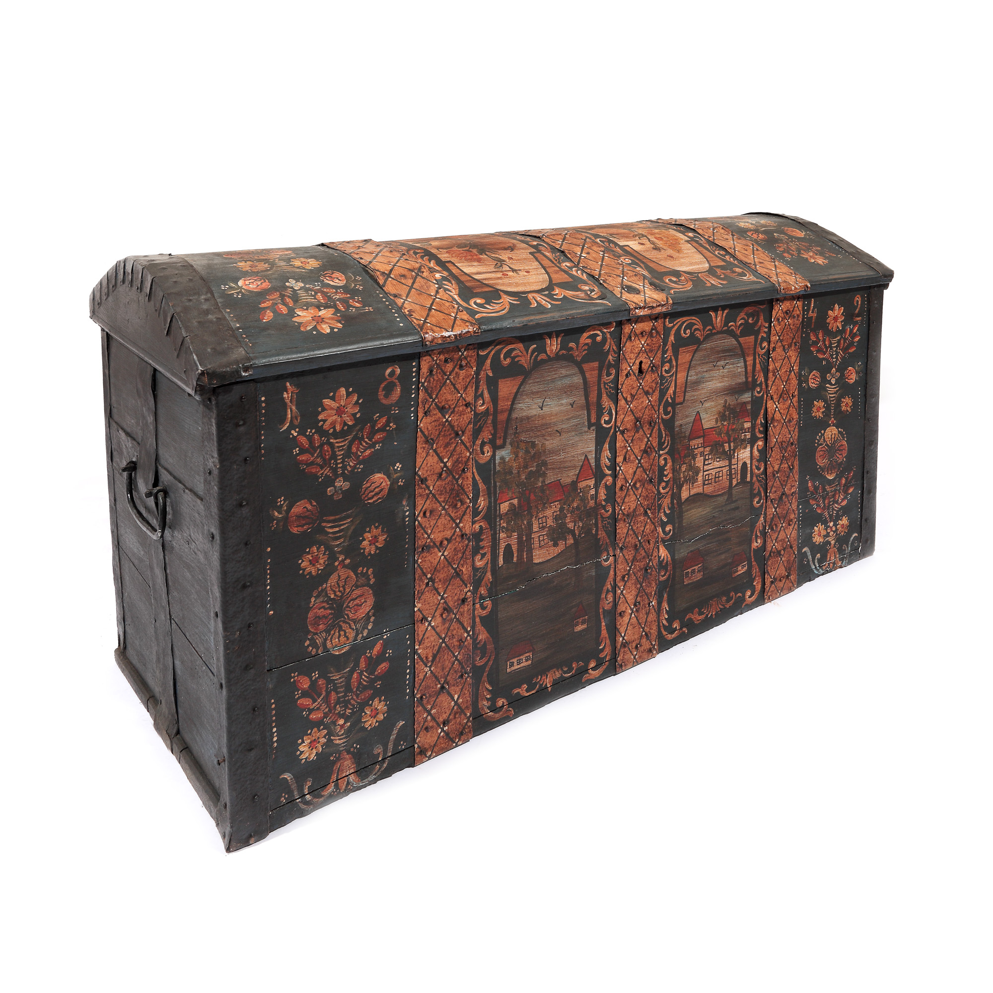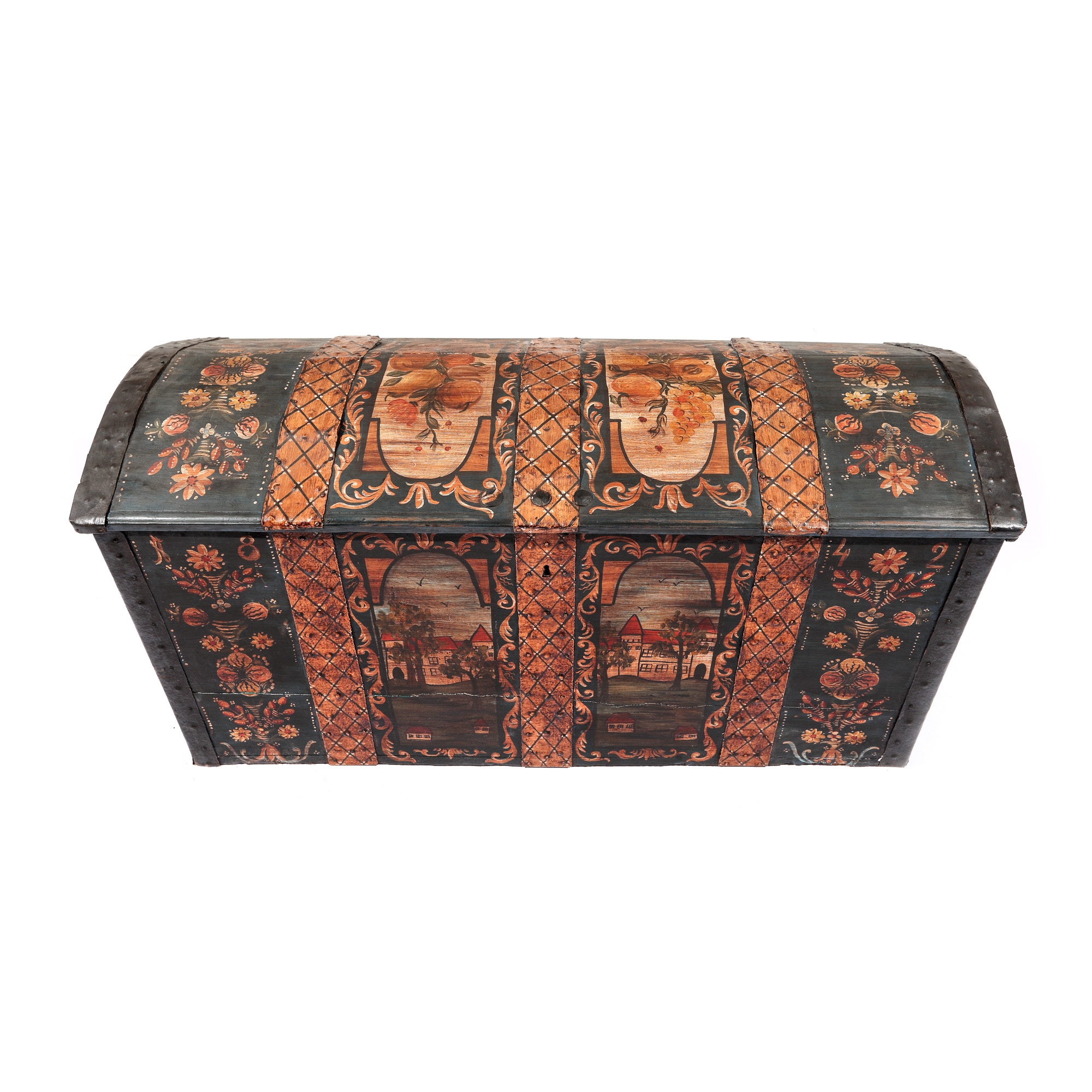 26. Ladă săsească din lemn, pictată, Transilvania, datată 1842