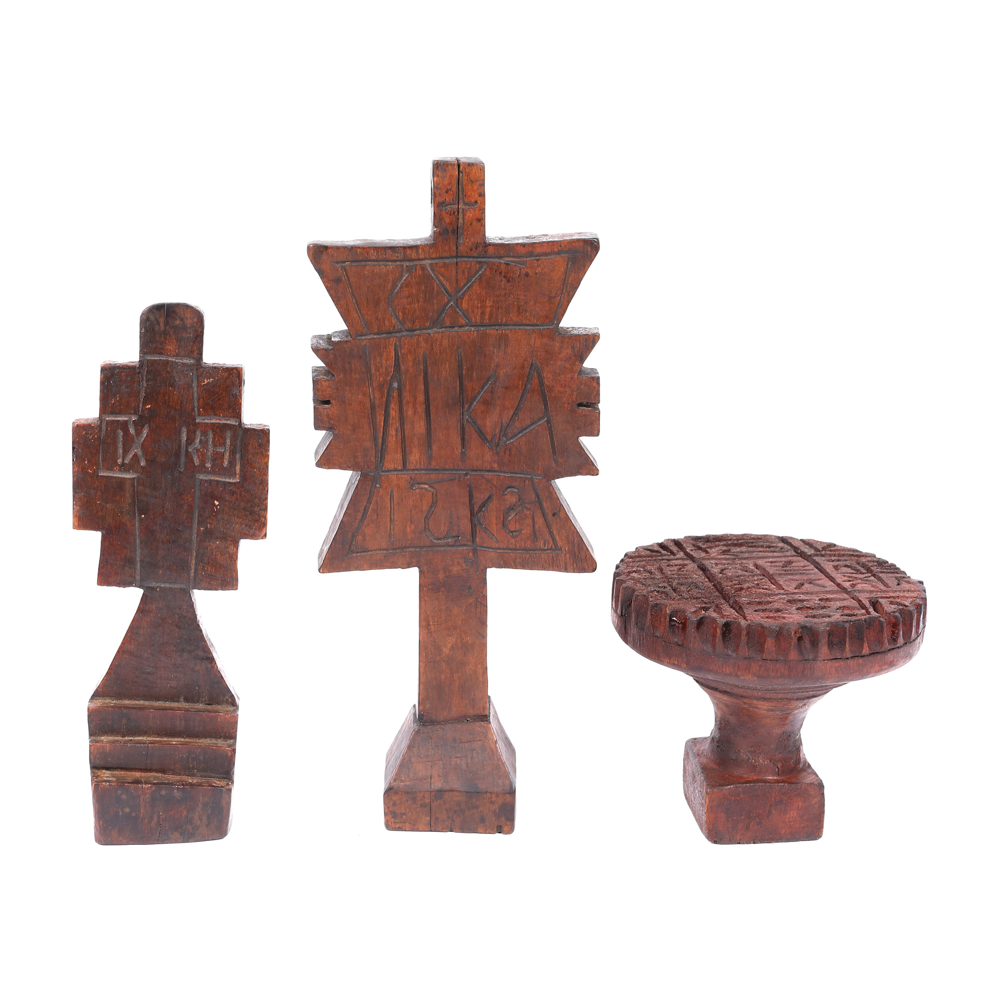 52. Lot format din pecetar din lemn și două pristolnice, Muntenia, începutul sec. XX