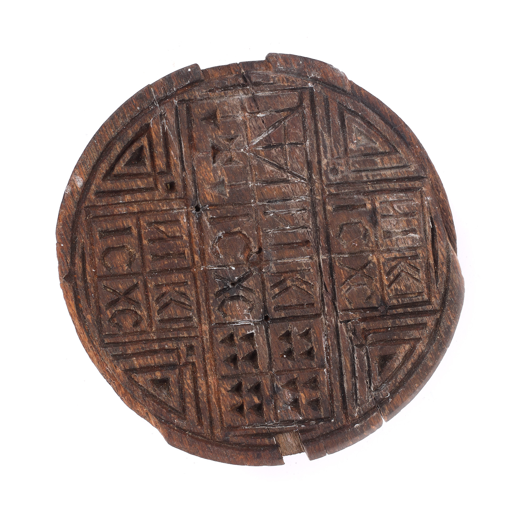 54. Pristolnic din lemn decorat cu ”Liturghia îngerească”, zona Dobrogea, începutul sec. XX
