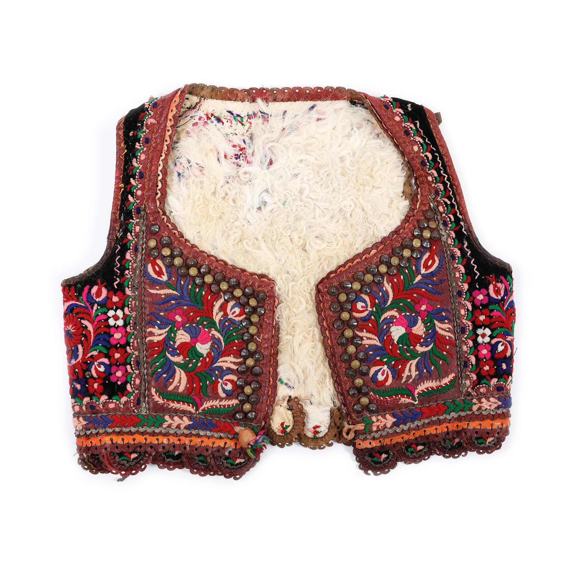 42. Spectaculos pieptar din lână, cusut cu motive florale și alte motive tradiționale specifice, Câmpia de Vest, începutul sec. XX