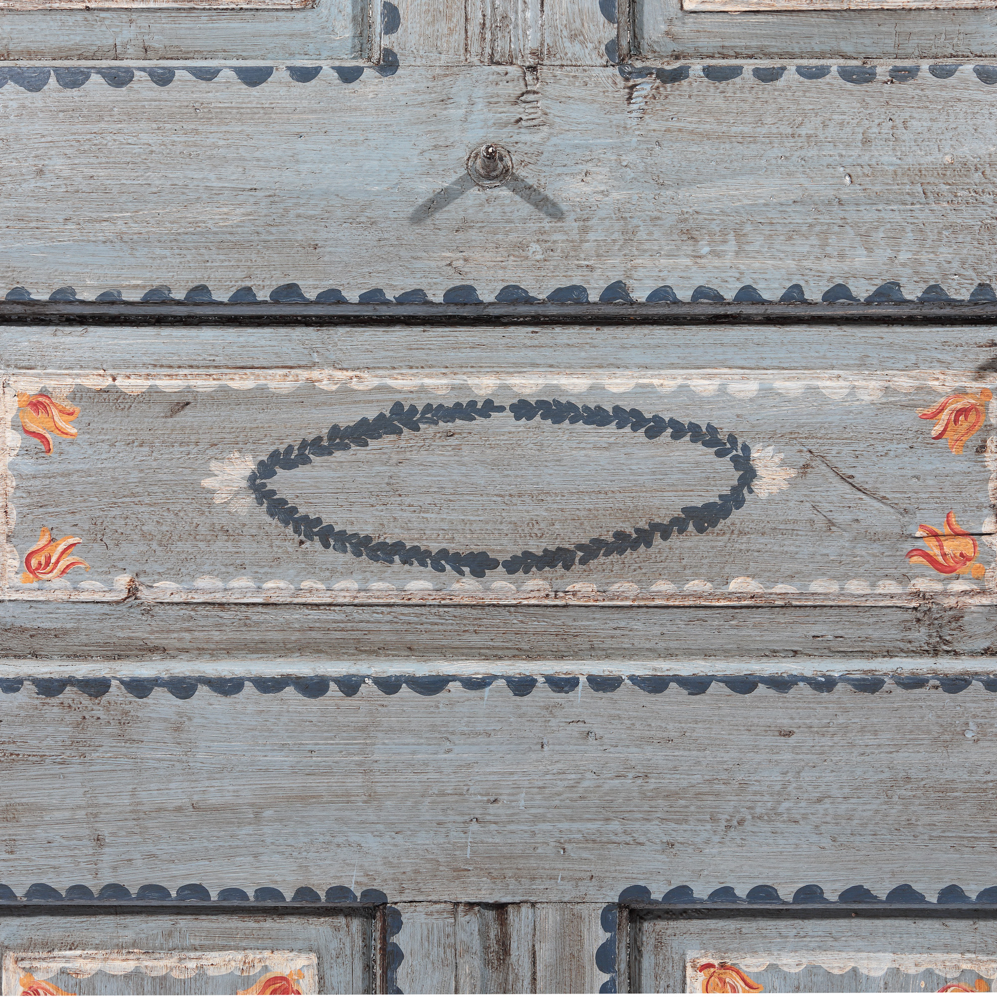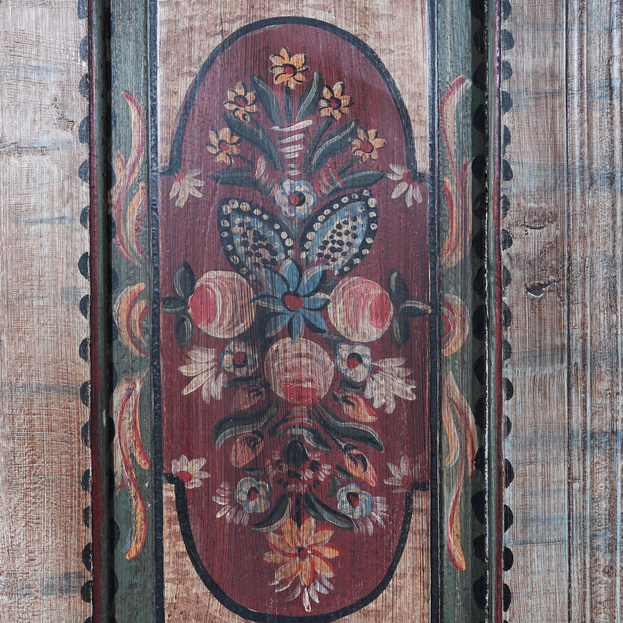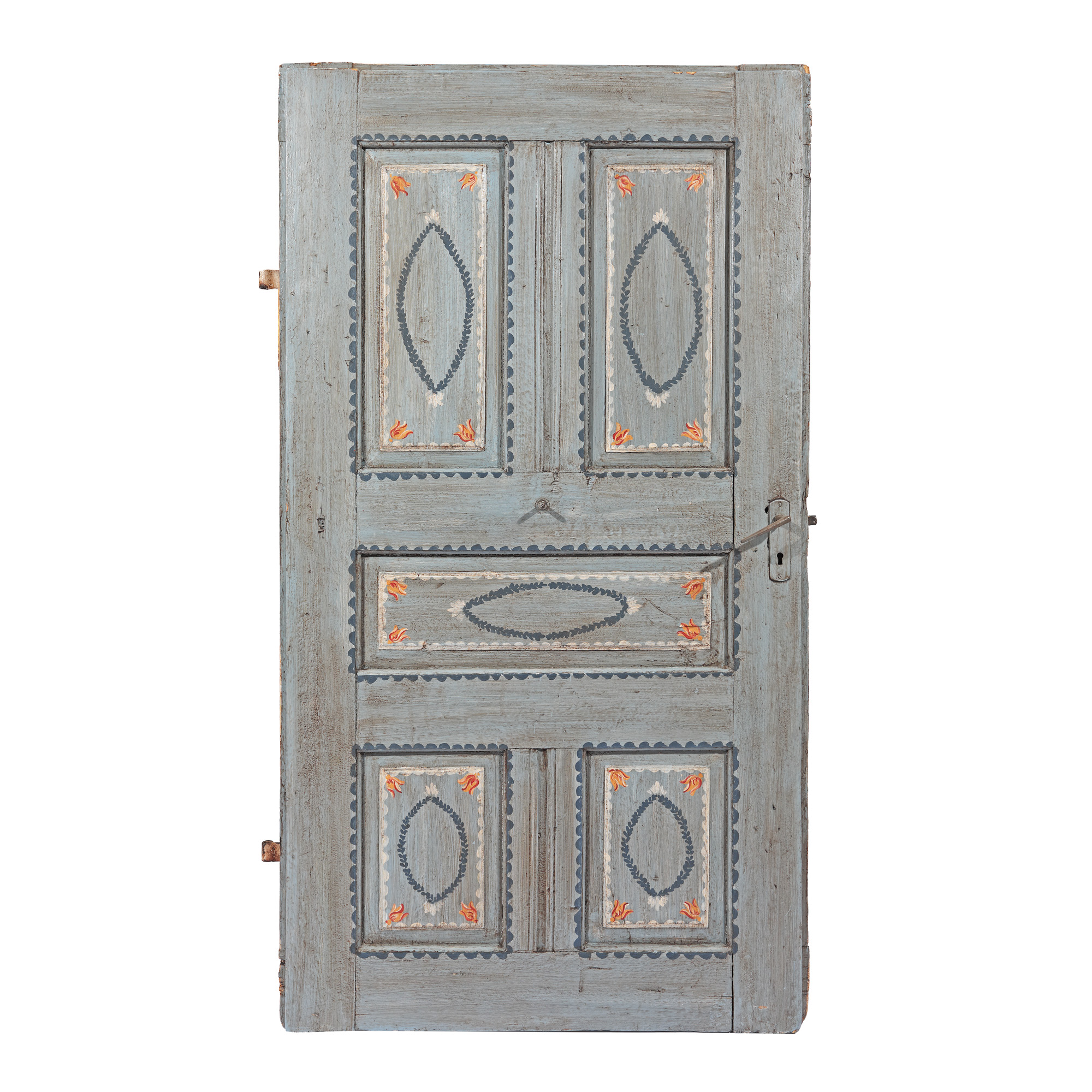 25. Ușă săsească din lemn, pictată cu bujori și narcise, inscripționată cu numele proprietarului casei, datată 1847
