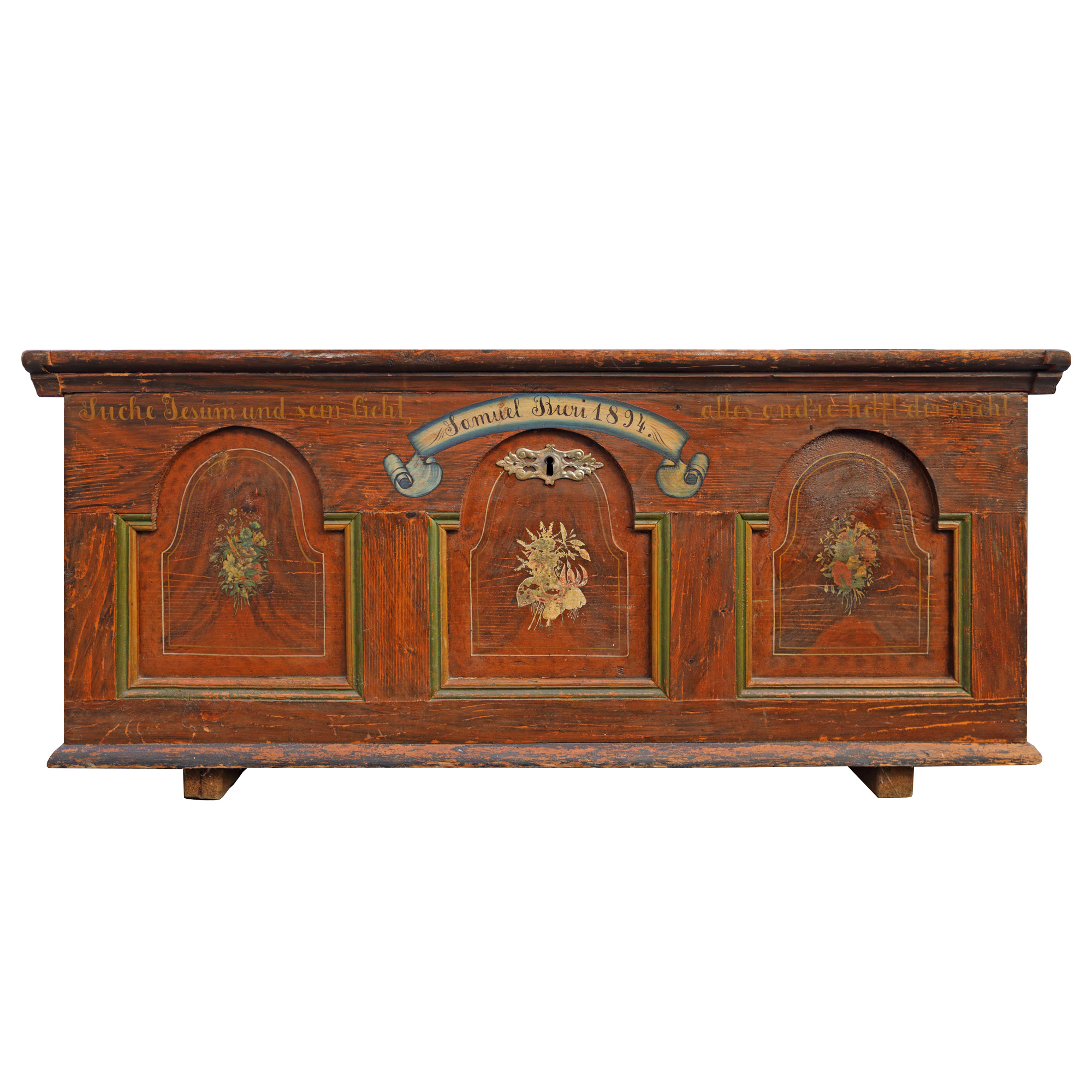 25. Ladă săsească de zestre, stil baroc târziu transilvan, inscripționată și datată 1894