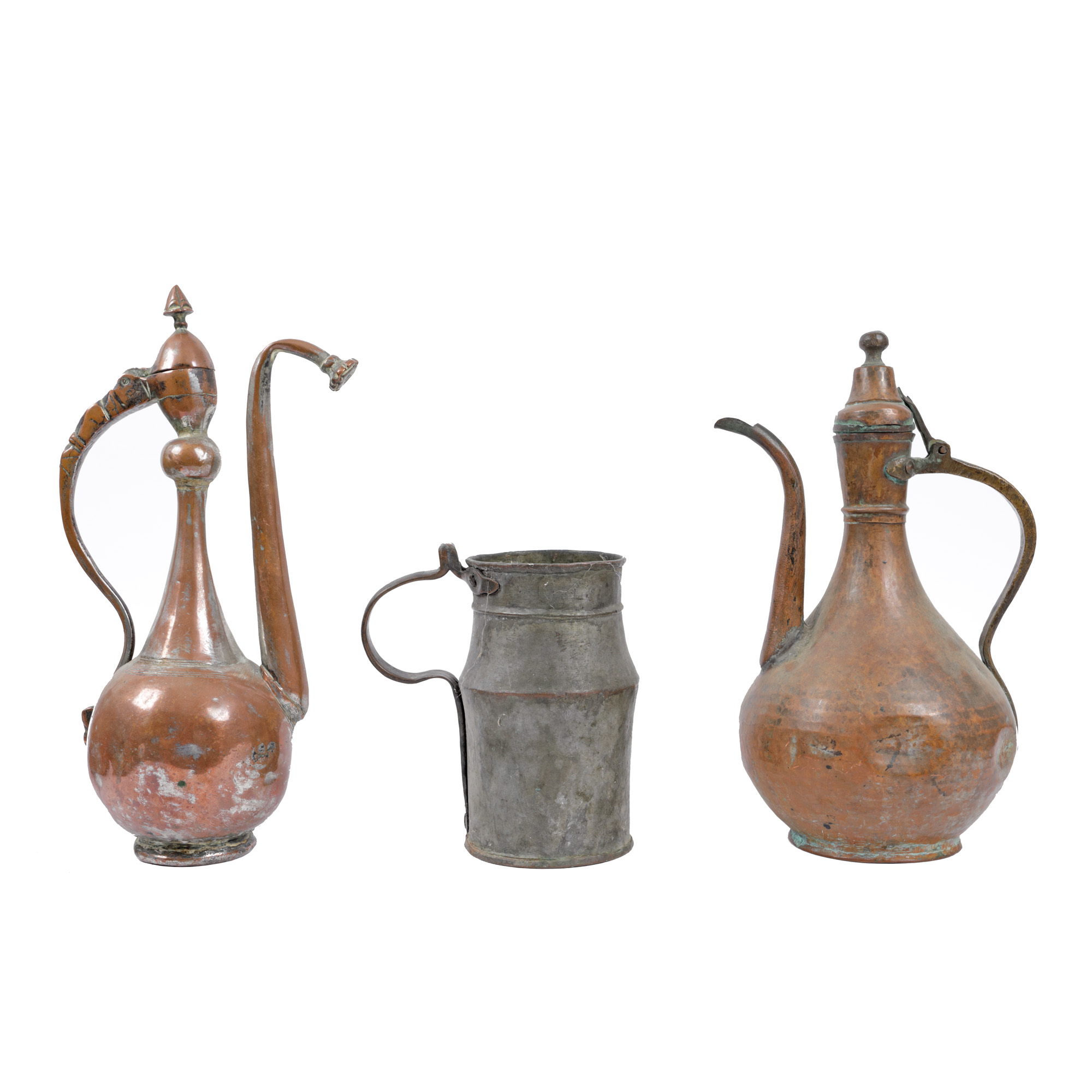 1. Lot format din vase din cupru cositorit și o cană pentru aghiasmă, Dobrogea, sfârșitul sec. XIX