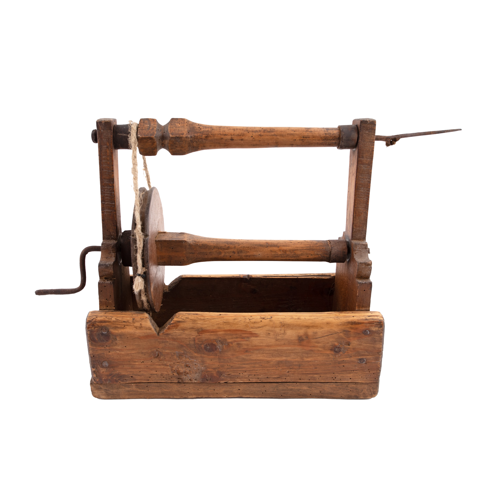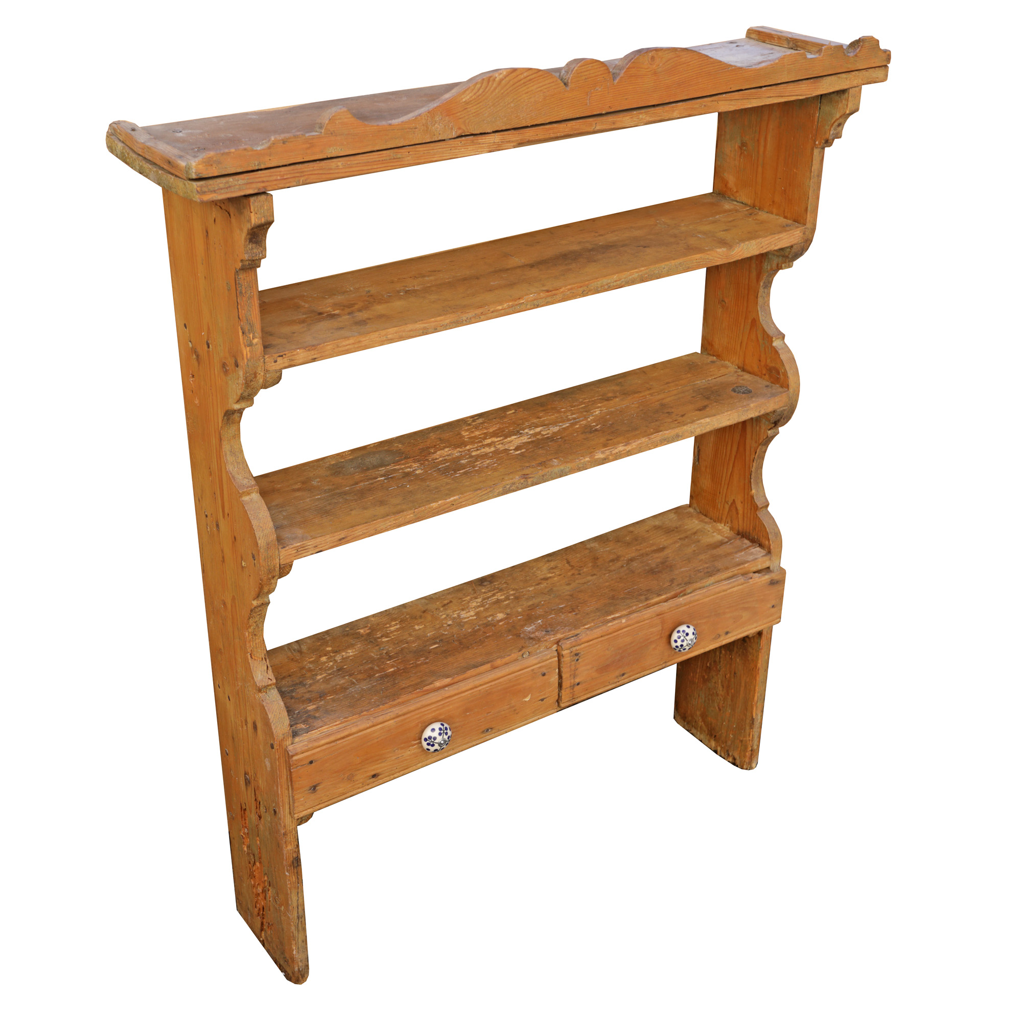 13. Blidar țărănesc din lemn de brad, cu mânere din porțelan, prima jumătate a sec. XX