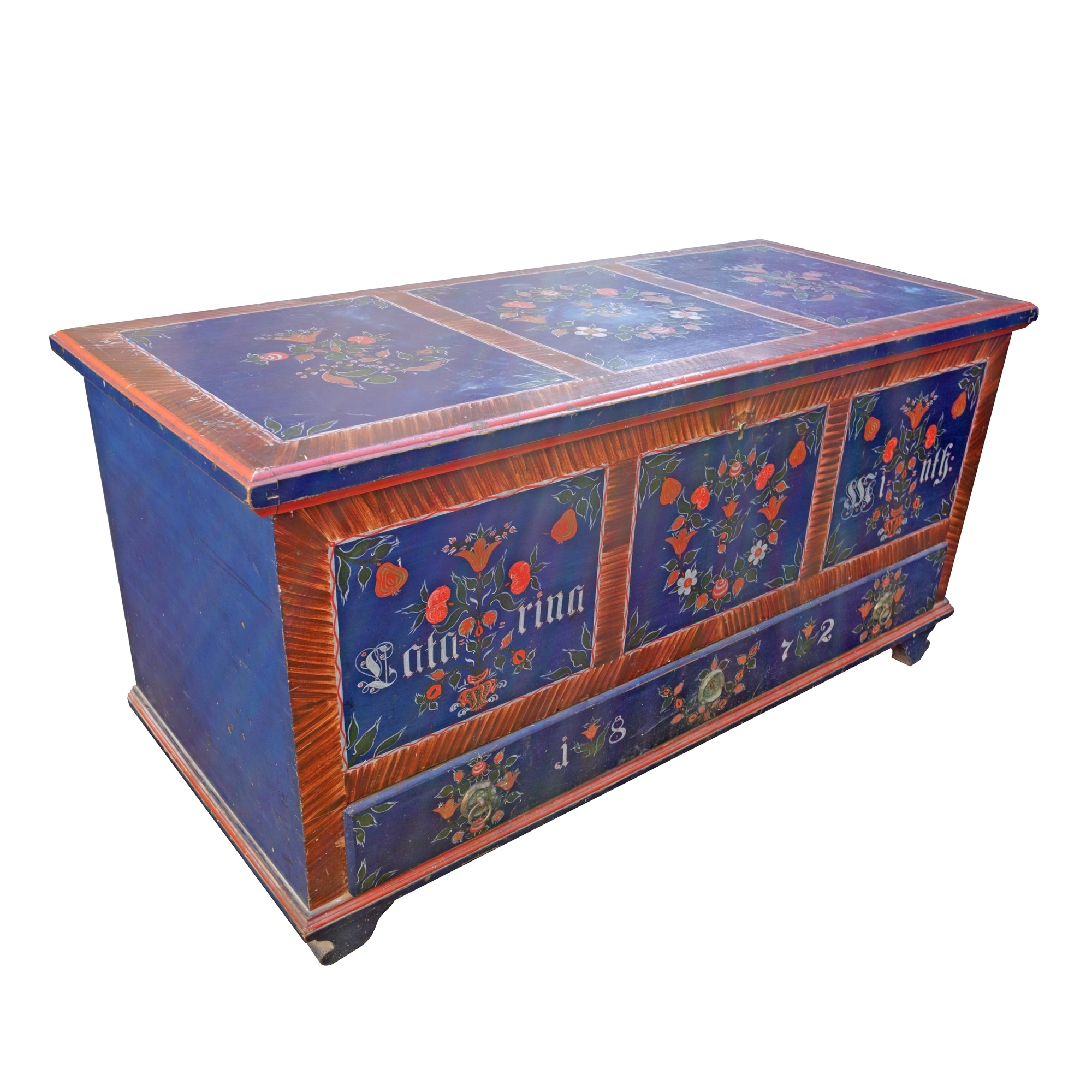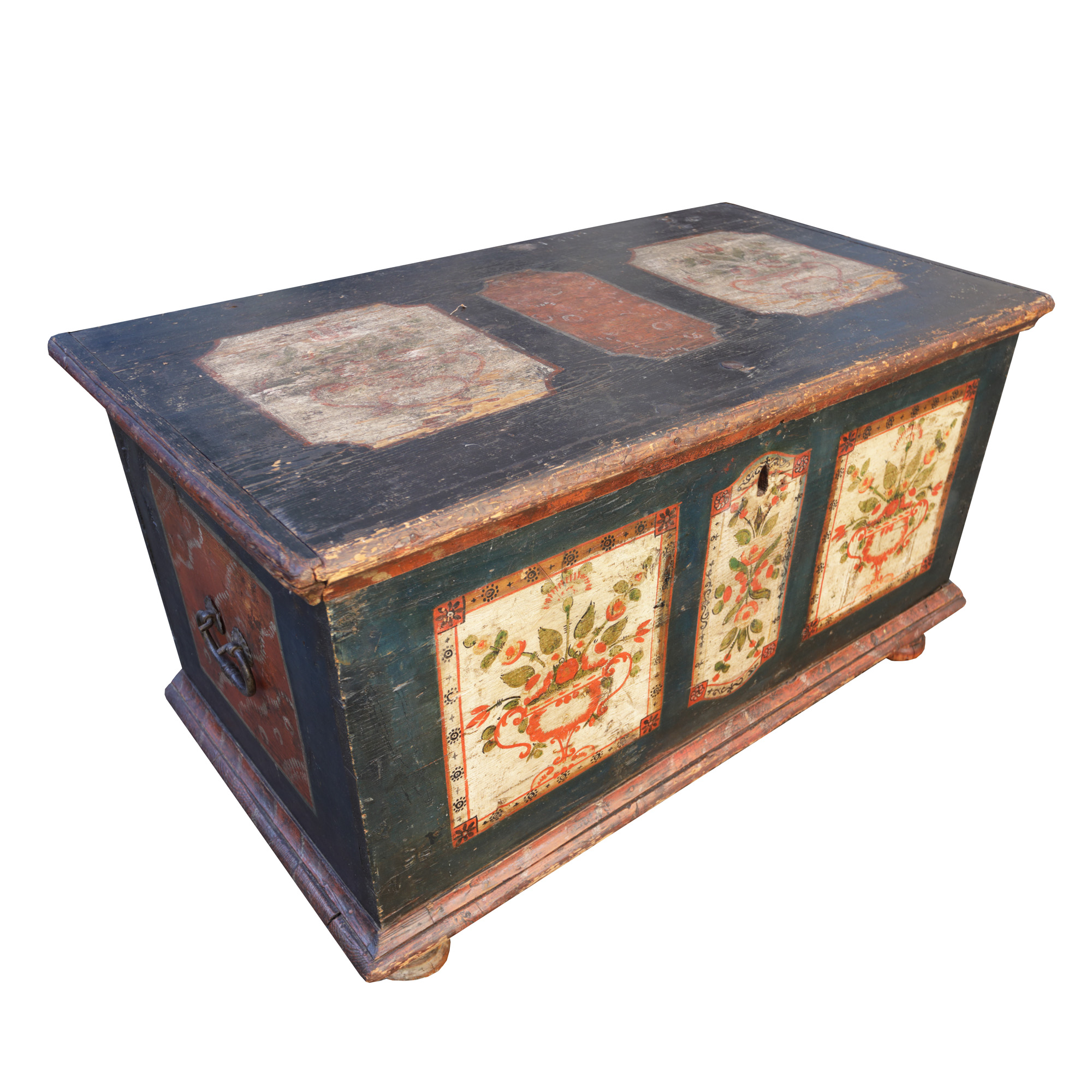 27. Ladă de zestre săsească, decorată cu buchete de trandafiri, posibil Mediaș, sec. XIX