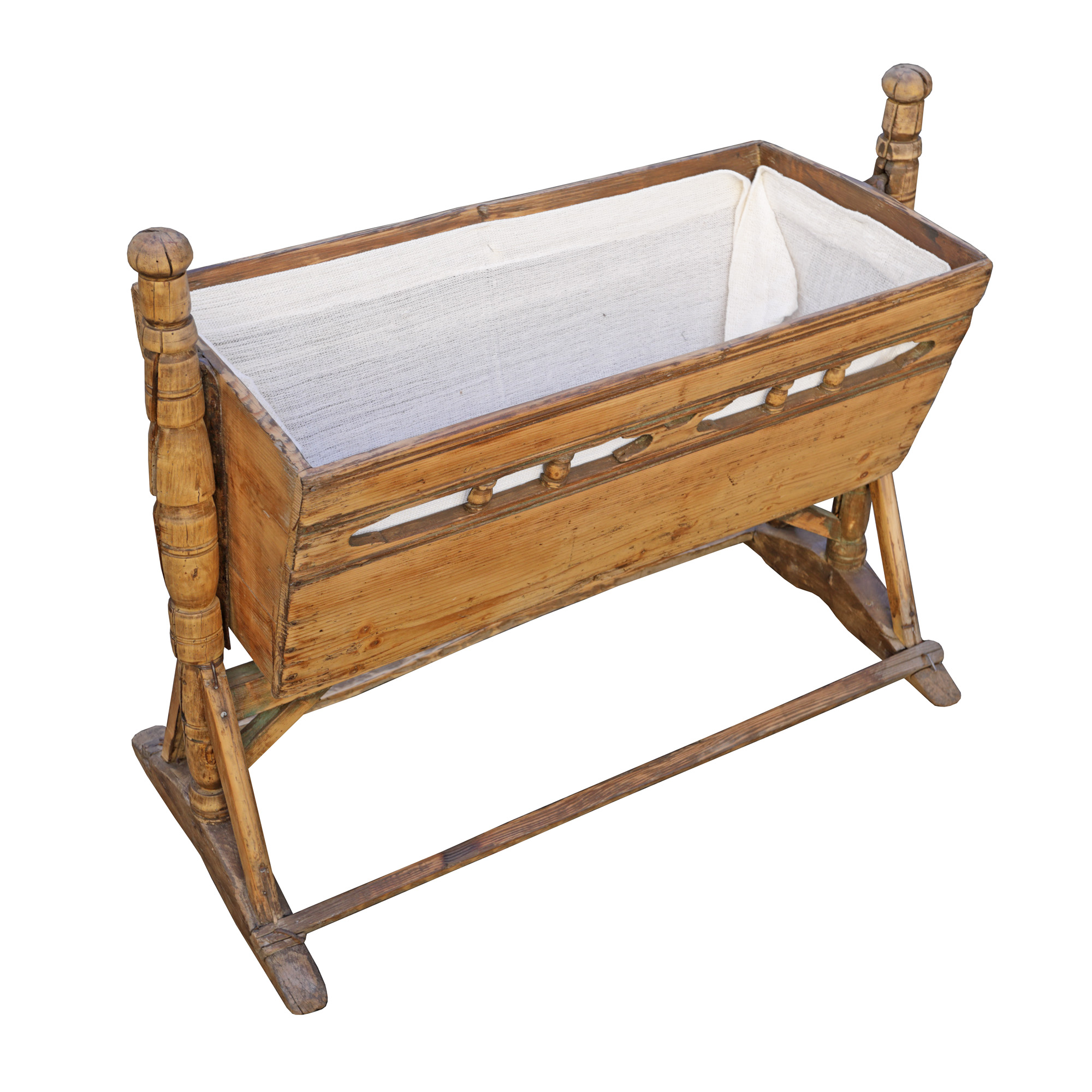 15. Pătuț pentru copil din lemn sculptat, Transilvania, sfârșitul sec. XIX
