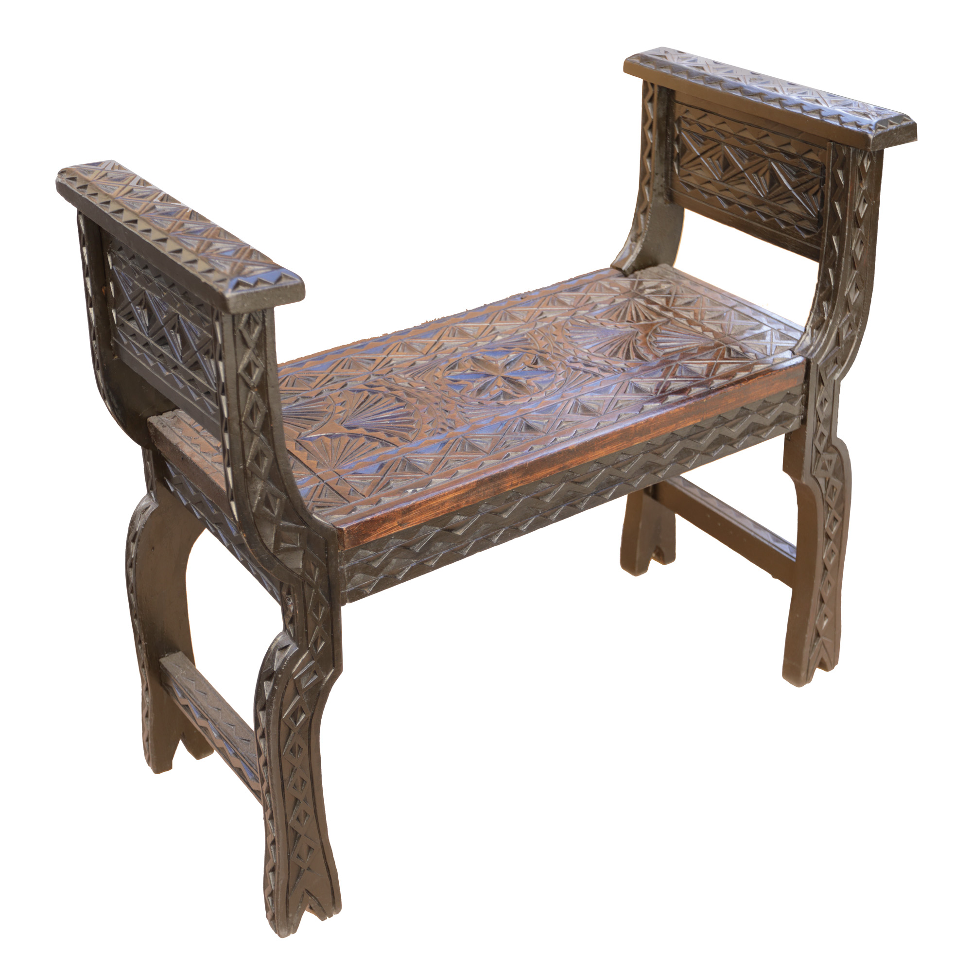 16. Banchetă din lemn de tei, în stil Neo-Brâncovenesc, prima jumătate a sec. XX
