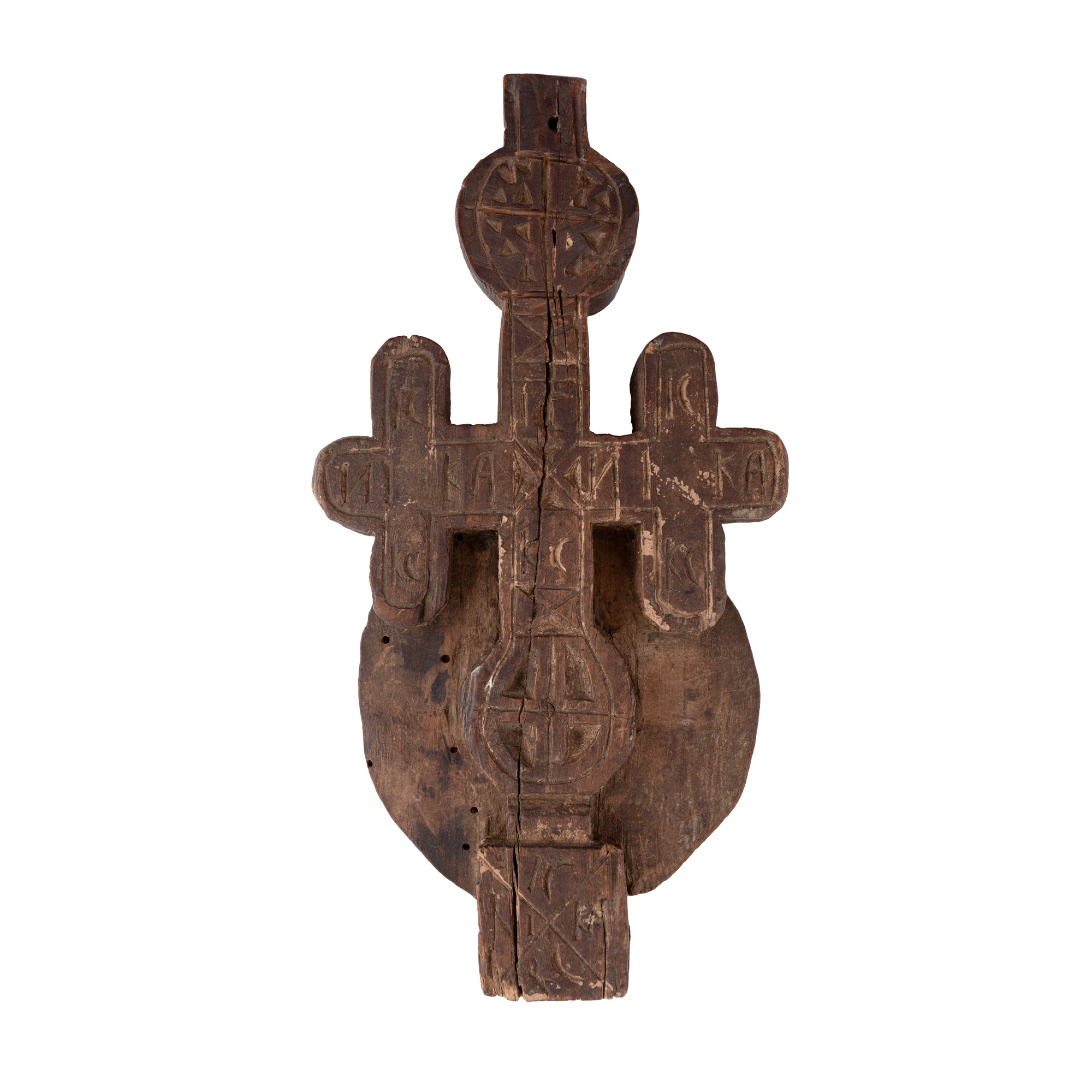 7. Pristolnic dublu din lemn sculptat, Muntenia, sec. XIX