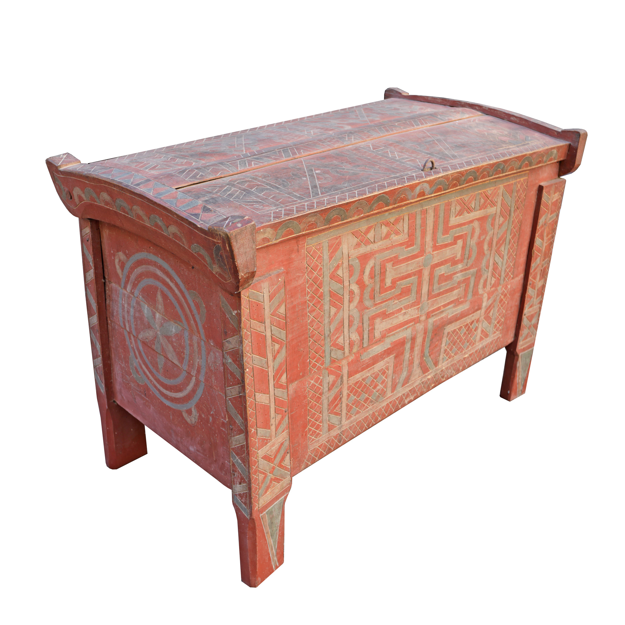 26. Ladă de zestre mănăstirească, pictată cu motivul crucii, Gorj, mijlocul sec. XIX, piesă rară