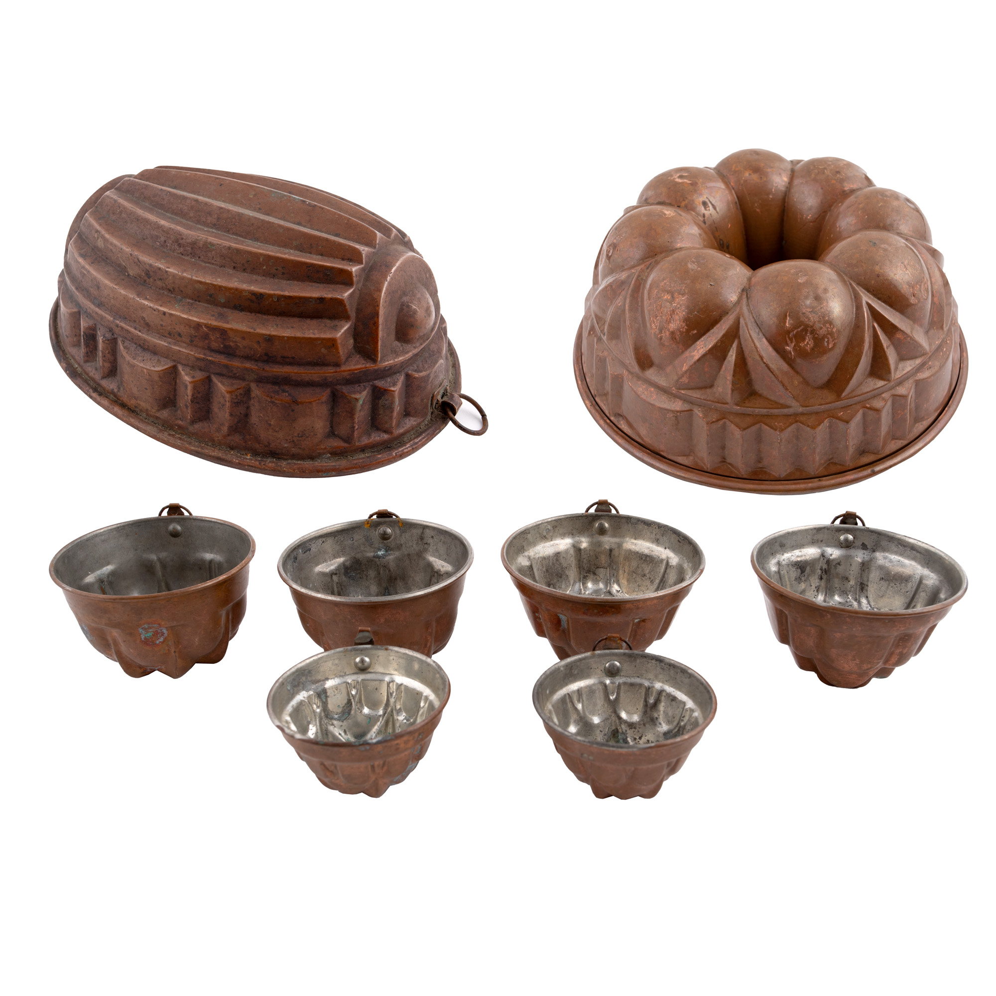 11. Set de forme vechi din cupru, pentru prăjituri, Transilvania, cca. 1920
