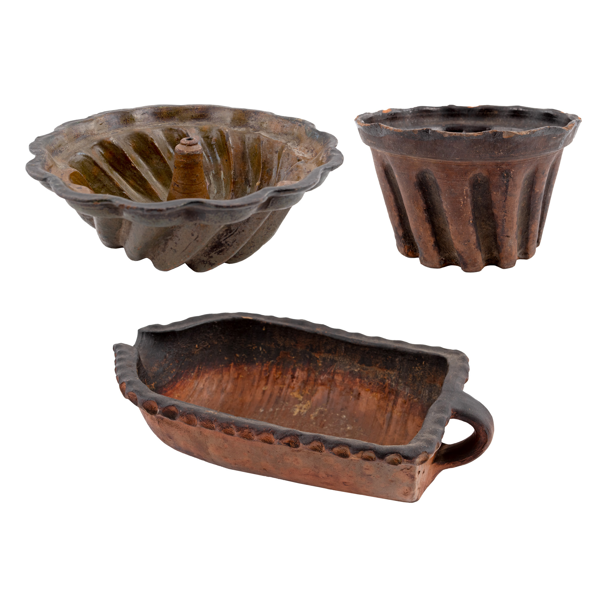 12. Set de două vase pentru guguluf și vas lung pentru cuptor, Transilvania, începutul sec. XX