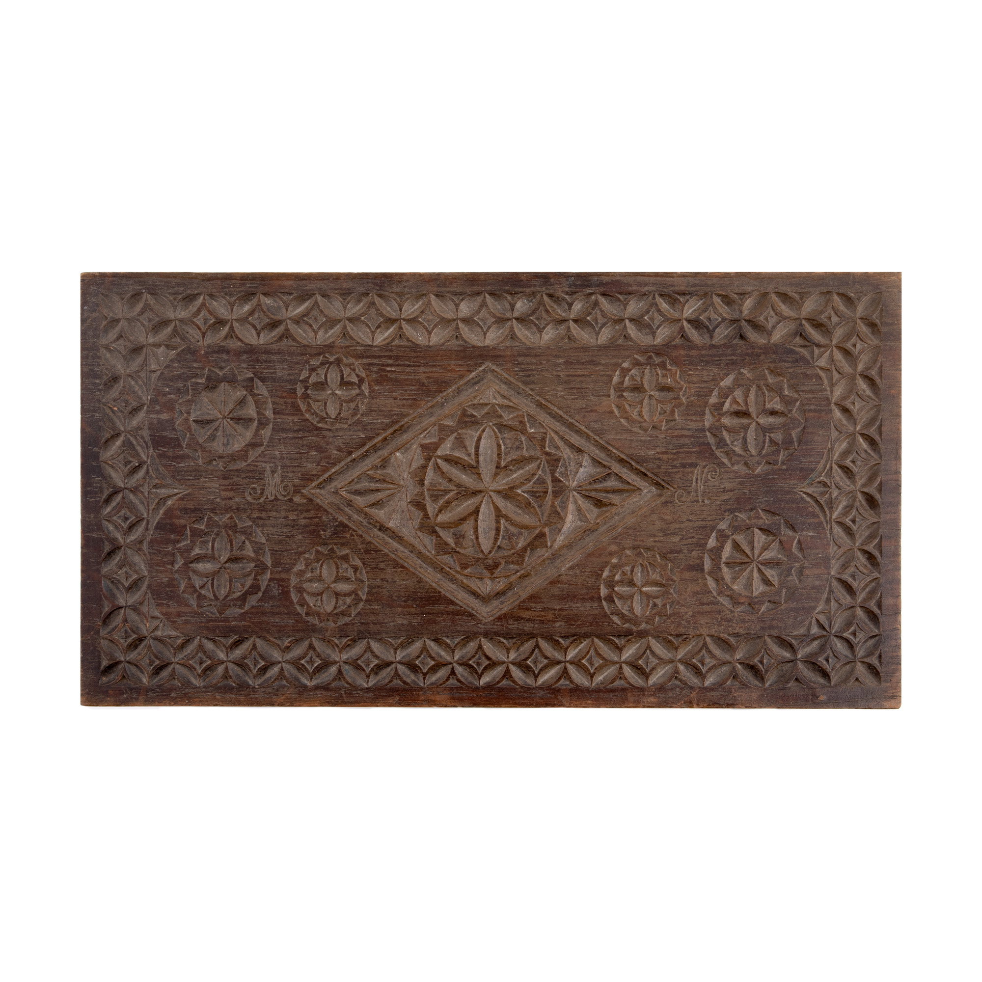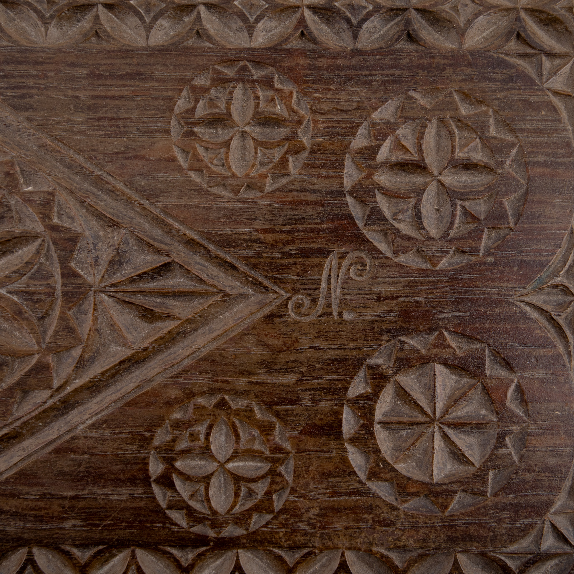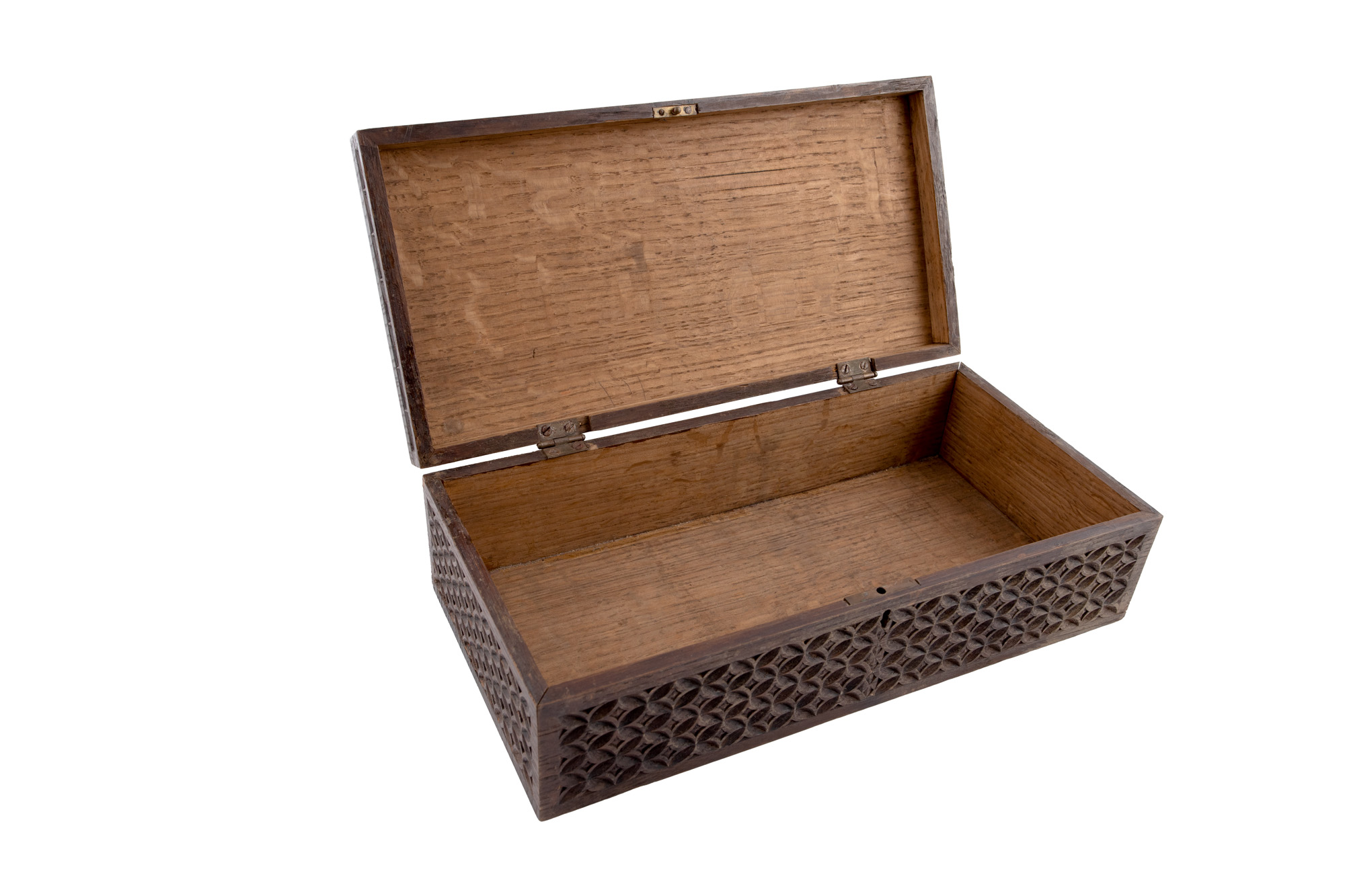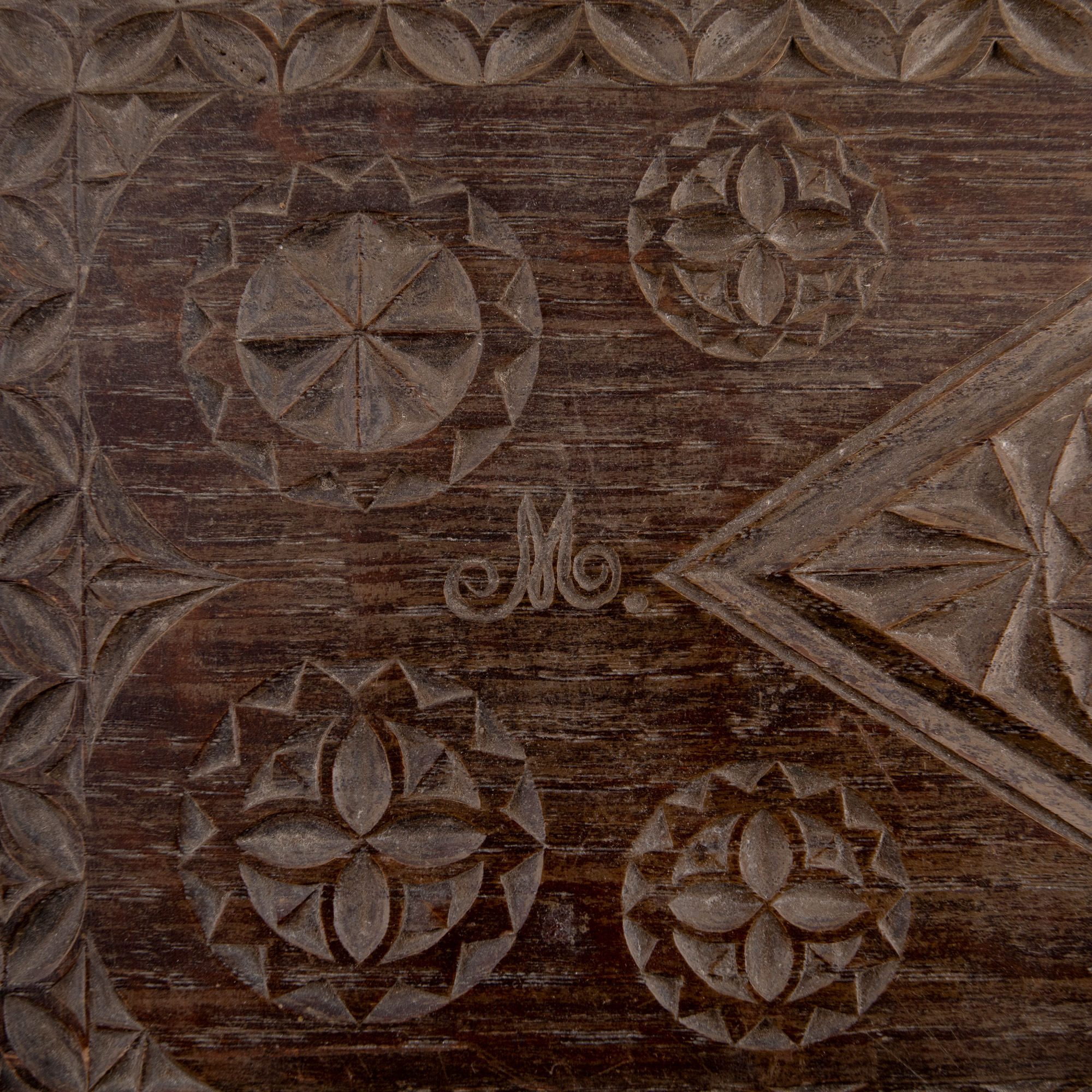 19. Cutie din lemn în stil Neo-Românesc, monogramată pe capac cu inițialele ”MN”, cca. 1920